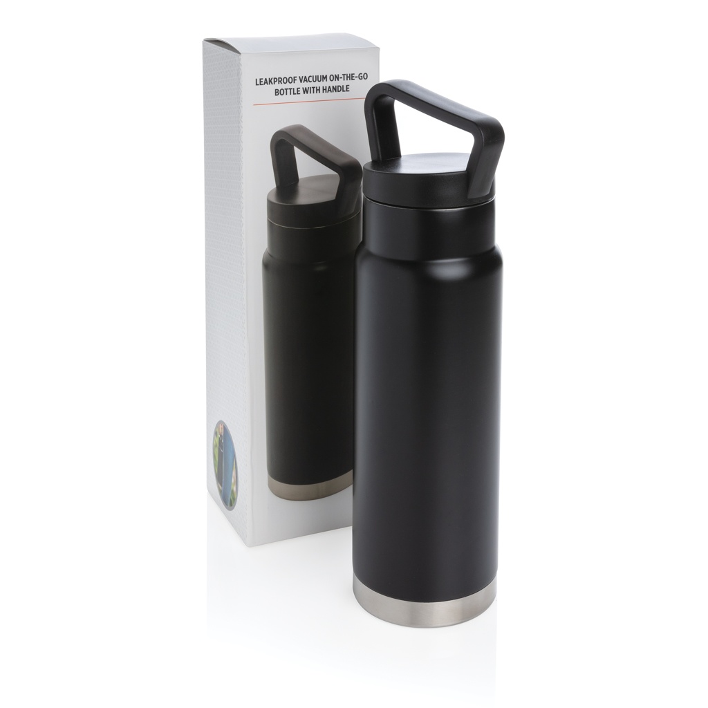 Auslaufsichere Vakuum-Flasche mit Tragegriff, Schwarz