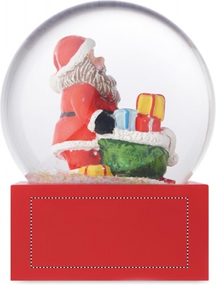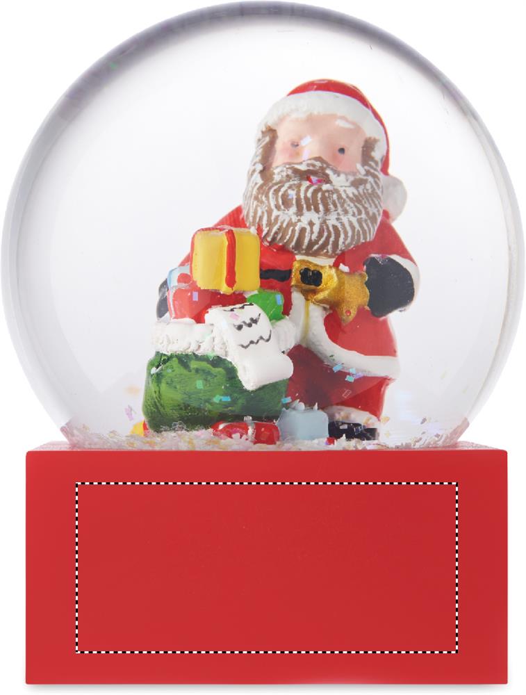 Weihnachtliche Schneekugel aus Glas mit Sockel aus Polyresin.