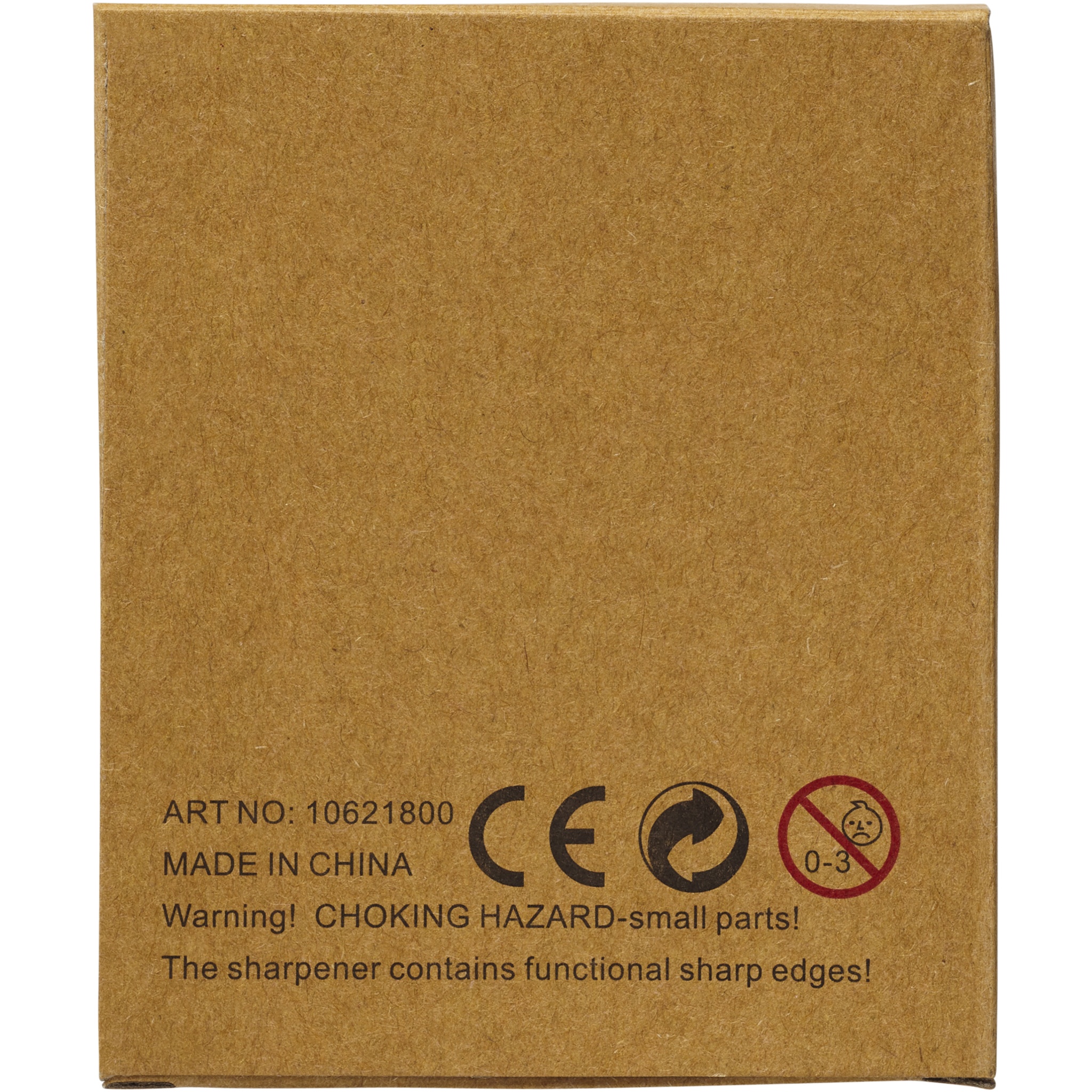 6 Buntstifte, ein Spitzer und ein Malblock.