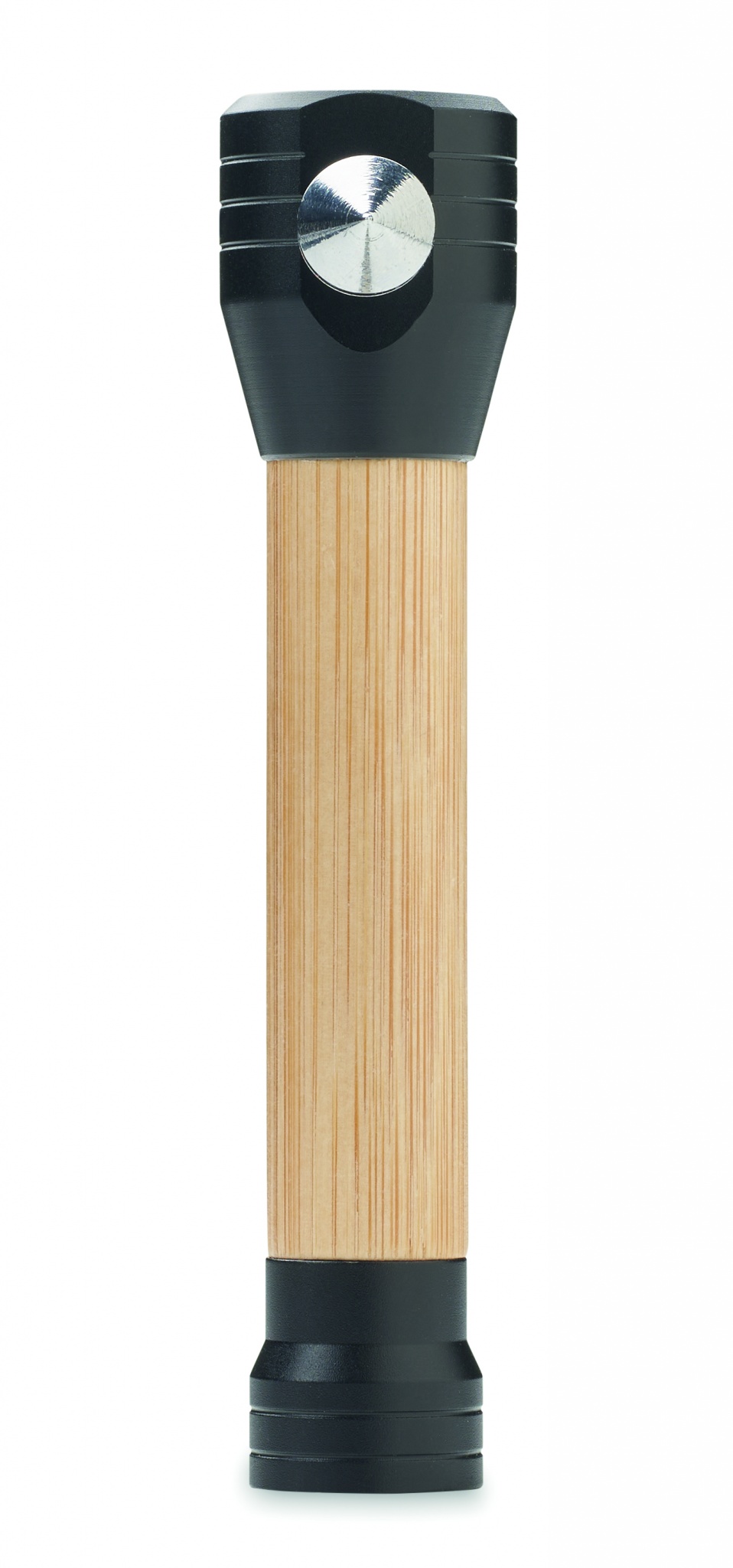 3 in 1 bamboo torch with emergency hammer and seat belt cutter. It has a magnetic base. Output lumen: 60. 2 AAA batteries excluded. Bamboo is a natural product, there may be slight variations in colour and size per item, which can affect the final decoration outcome.