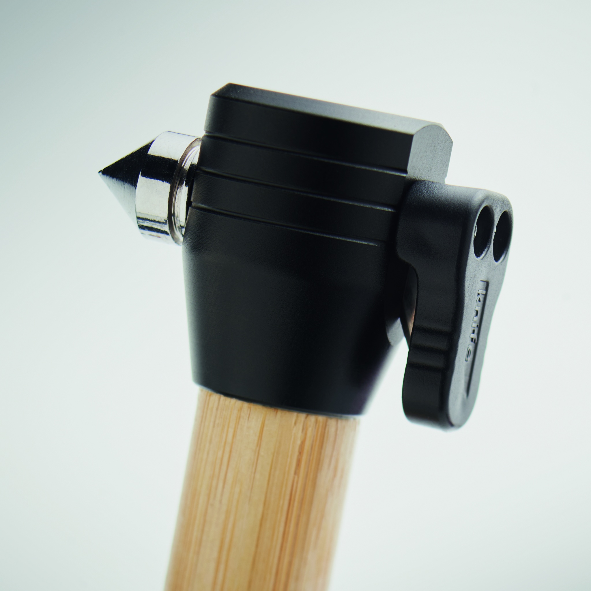 Logo trade promotional merchandise picture of: 3-in-1 bamboo flashlight with an emergency hammer and seatbelt cutter