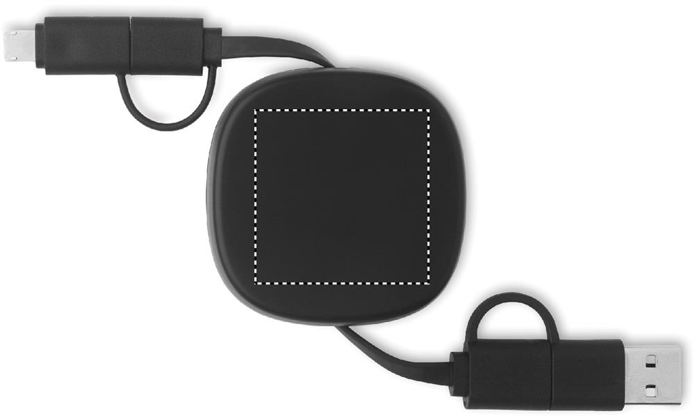 60W retractable cable in recycled ABS casing. Input: 2-in-1 Type-C and Type-A. Output: Type-C and micro-B (2 in 1 pin). Cable length: 80 cm.
