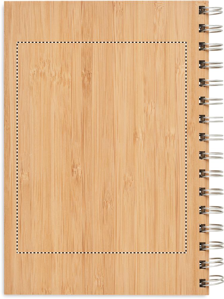 Bamboo cover notebook. Twin-wire ring bound, 140 lined kraft paper pages (70 sheets). Bamboo is a natural product, there may be slight variations in colour and size per item, which can affect the final decoration outcome.