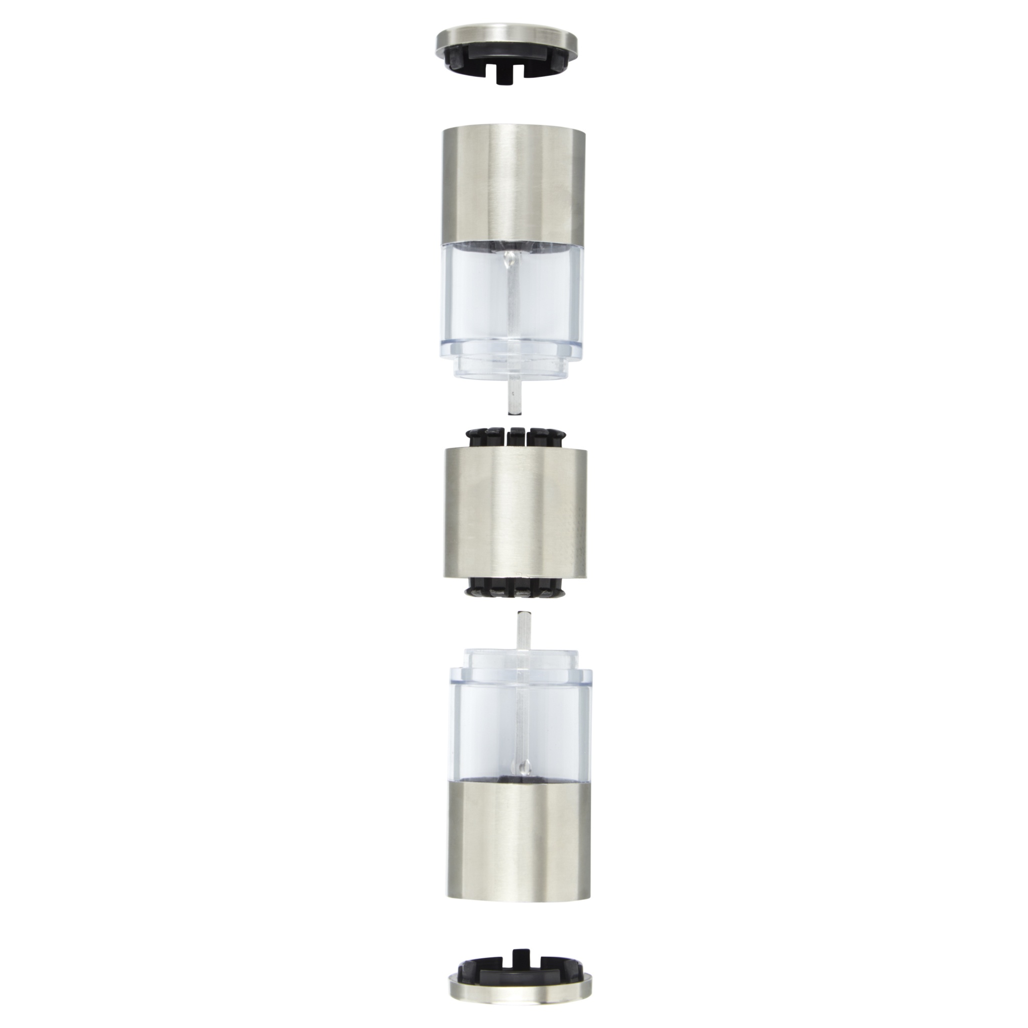 2-sided grinder with one end for salt and the other for pepper. Pepper and salt are not included.