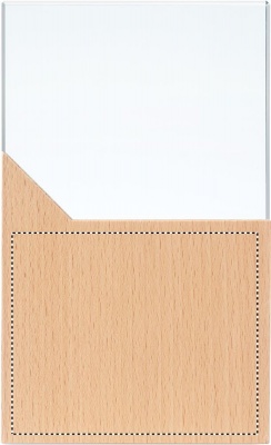 Crystal award or memorial plaque on a beech wooden base in a gift box.