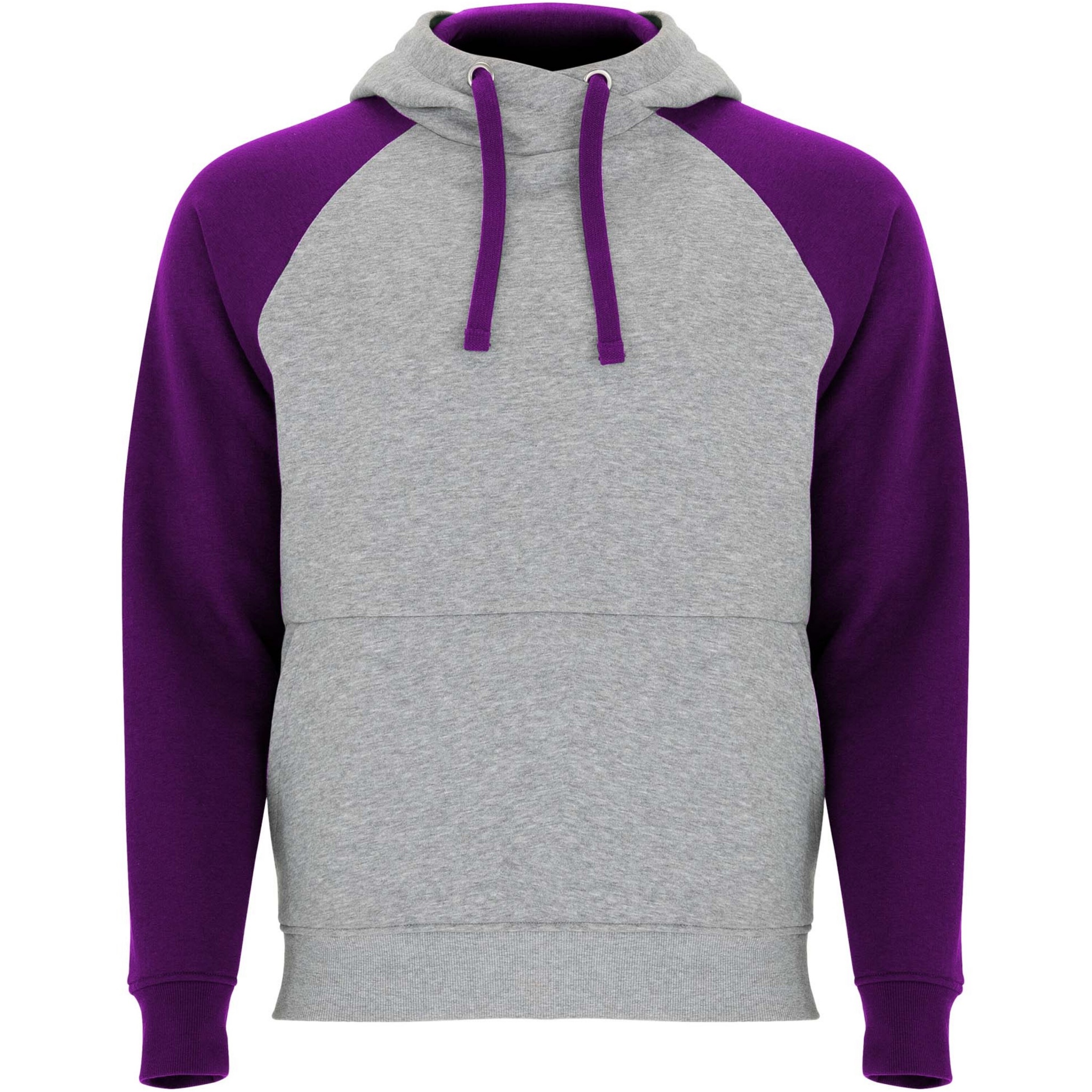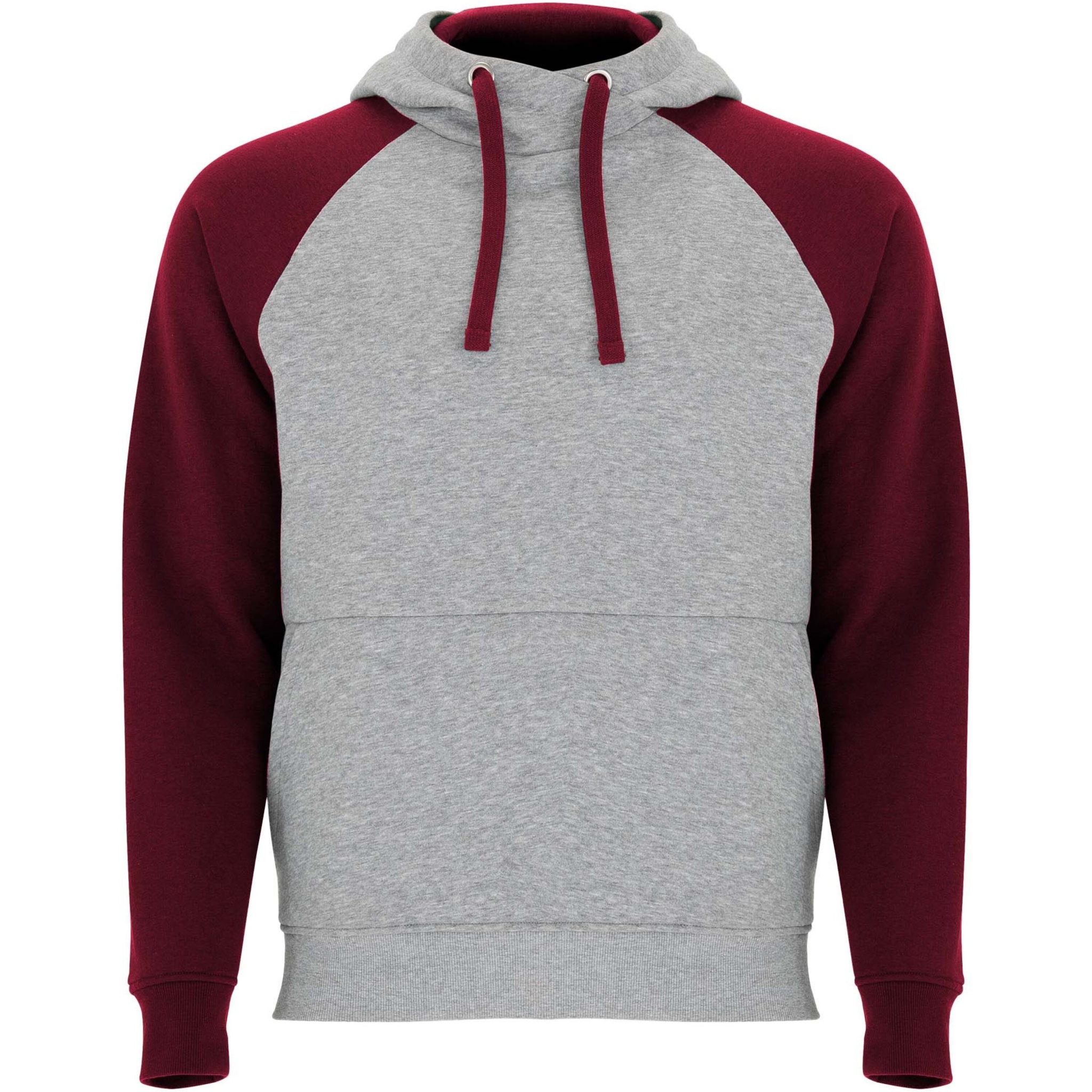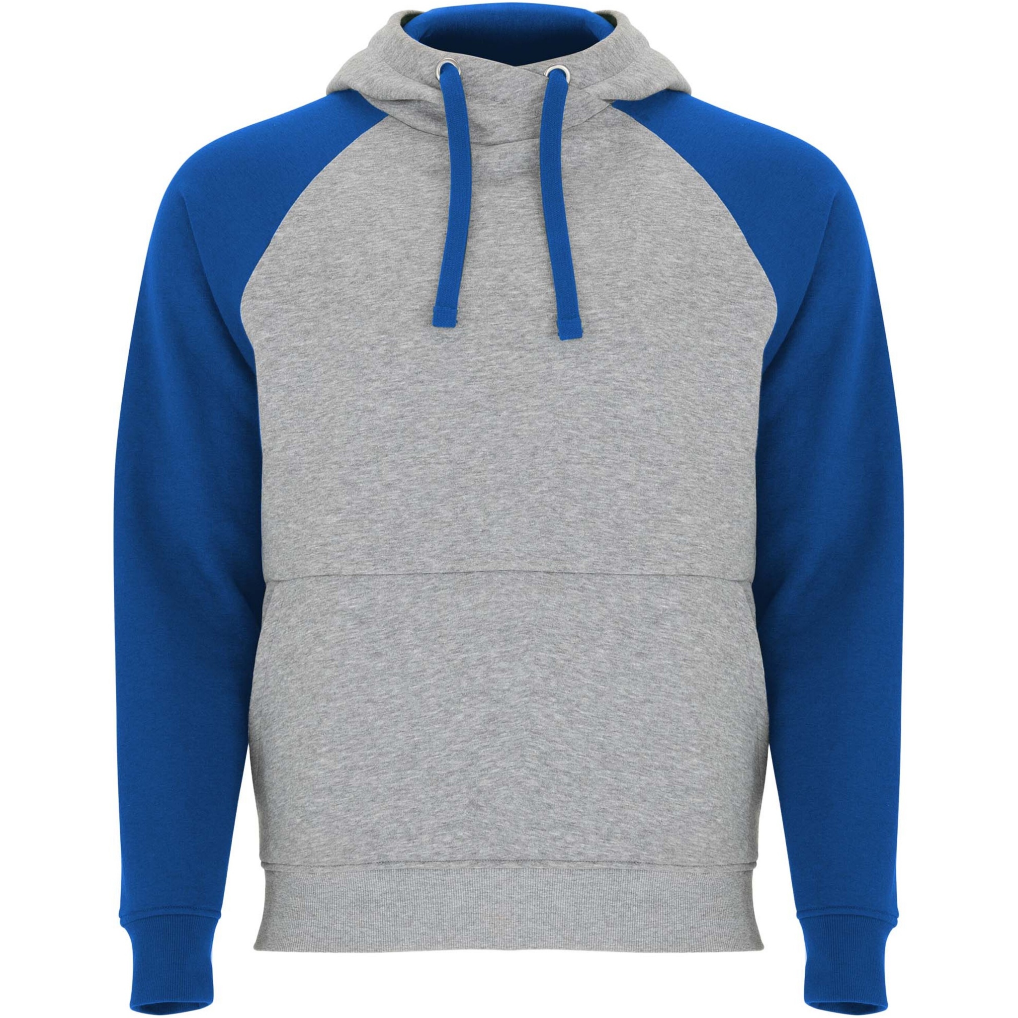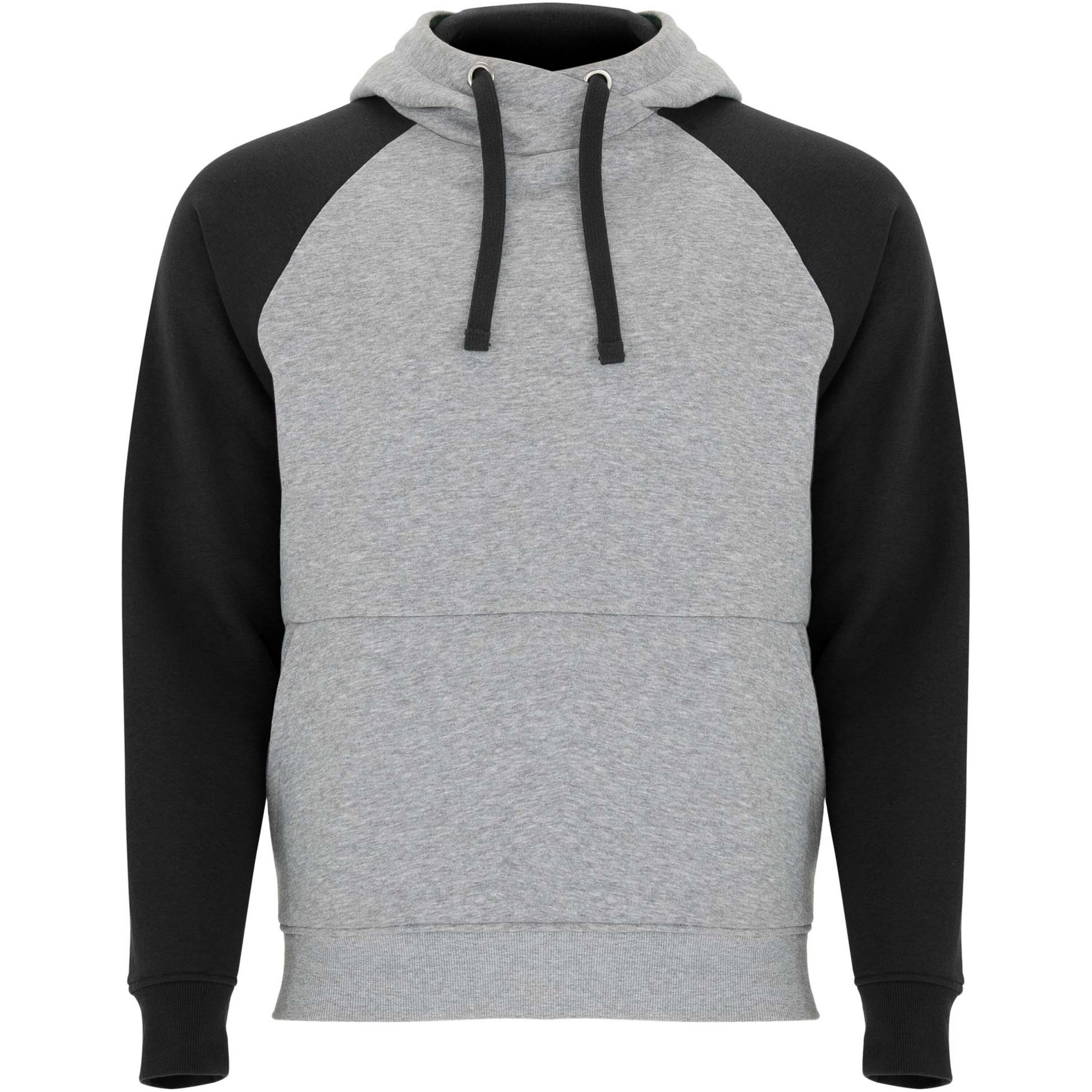 Two-colour unisex hoodie. Hood with crossed neck and metal eyelets. Contrasting inner hood, drawcord and raglan sleeves. Kangaroo pocket. Cuffs and hem in 1x1 elastane rib knit. Removable label.