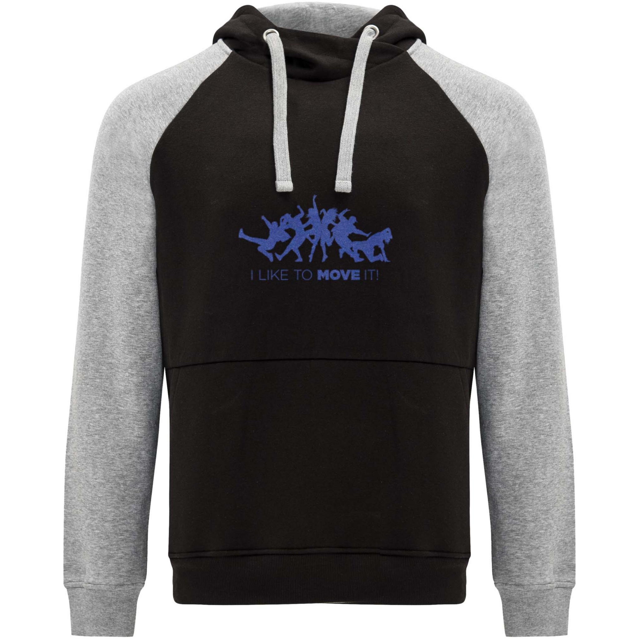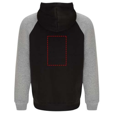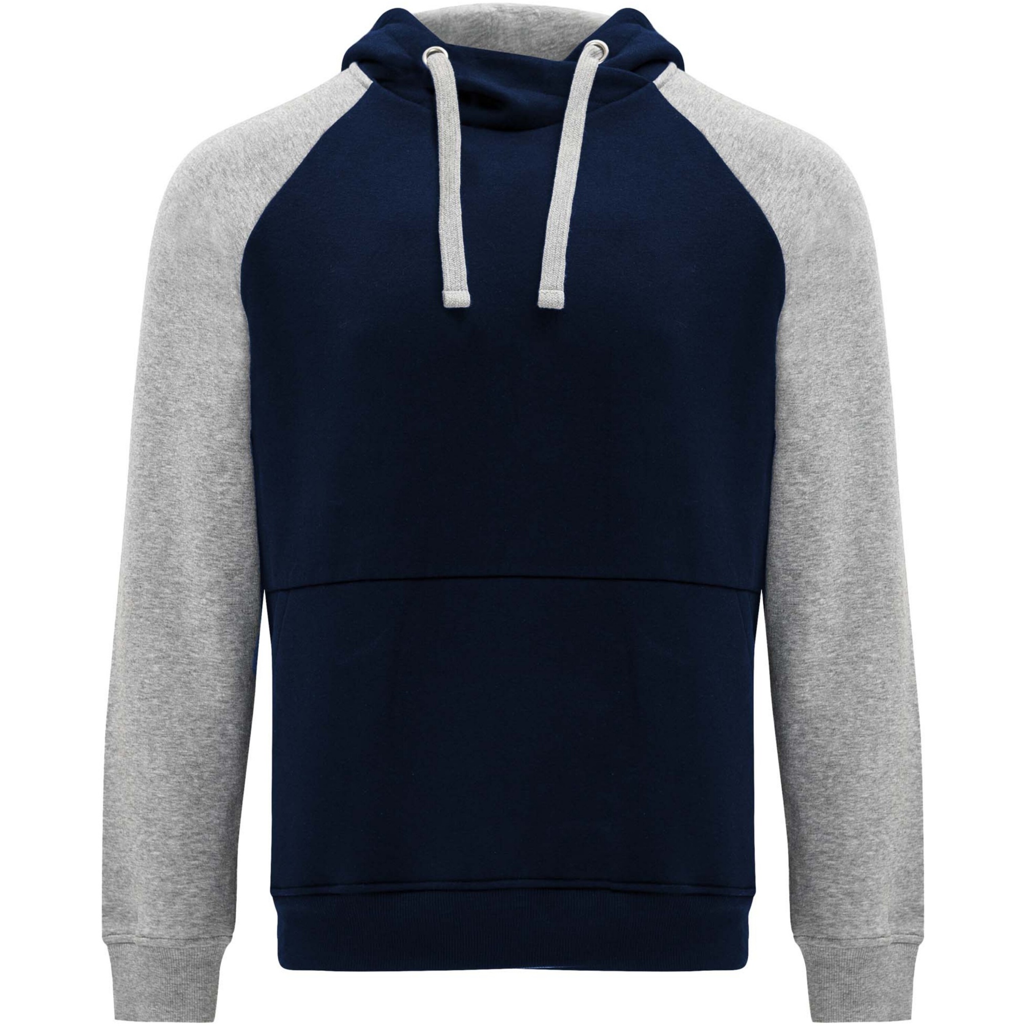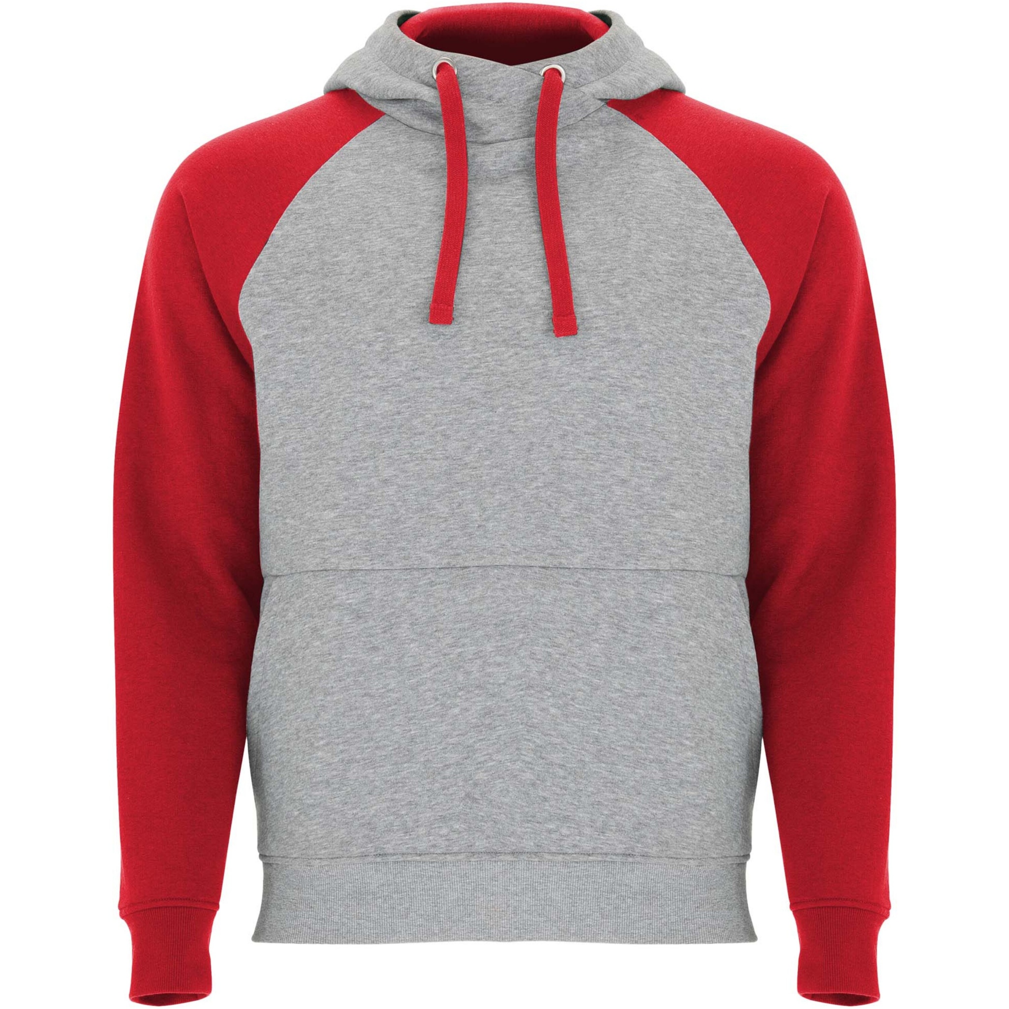 Two-colour unisex hoodie. Hood with crossed neck and metal eyelets. Contrasting inner hood, drawcord and raglan sleeves. Kangaroo pocket. Cuffs and hem in 1x1 elastane rib knit. Removable label.