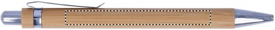 Push button ball pen in bamboo with shiny chrome fitting. Blue ink. Bamboo is a natural product, there may be slight variations in colour and size per item, which can affect the final decoration outcome.