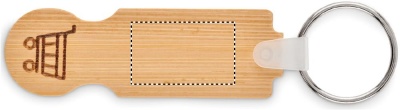 Bamboo key ring including euro token. Bamboo is a natural product, there may be slight variations in colour and size per item, which can affect the final decoration outcome.
