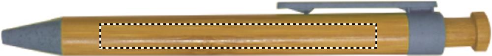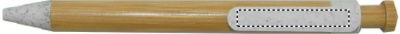 Push button ball pen with bamboo barrel and wheat straw (50%) and ABS (50% ) fittings. Blue ink. Bamboo is a natural product, there may be slight variations in colour and size per item, which can affect the final decoration outcome.
