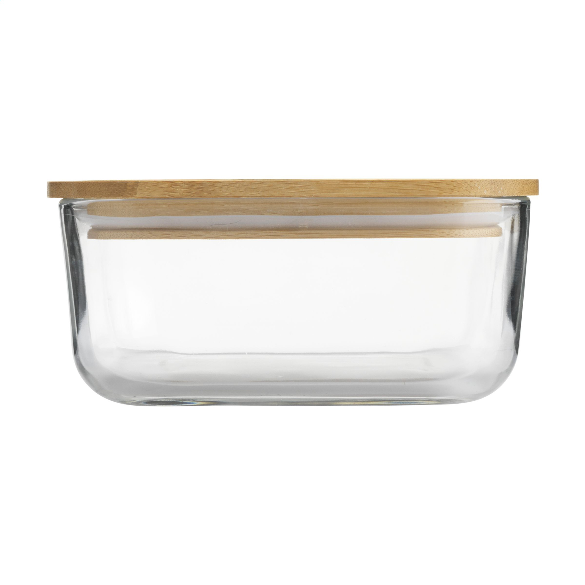Storage box made from soda lime glass. The bamboo lid with silicone sealing ring closes with a tight fit. BPA-free. Ideal for storing food in a hygienic and safe way. Also handy for taking lunch with you when you are on the go. Capacity 1,000 ml. Made in Italy.