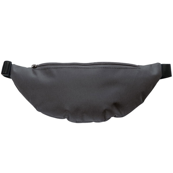 Belt bag in 600D polyester with zipped compartment, slide-in compartment, and adjustable shoulder strap. The logo is printed on the front center of the bag