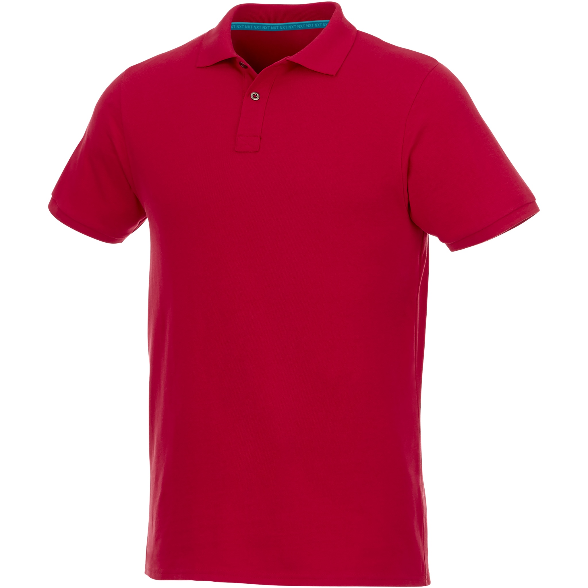 The Beryl short sleeve men's polo is made of 220 g/m² 70% cotton blended with 30% recycled polyester, making it a more sustainable option suitable for a variety of occasions and activities. The flat knit rib cuffs add sophistication and maintain the polo's shape.