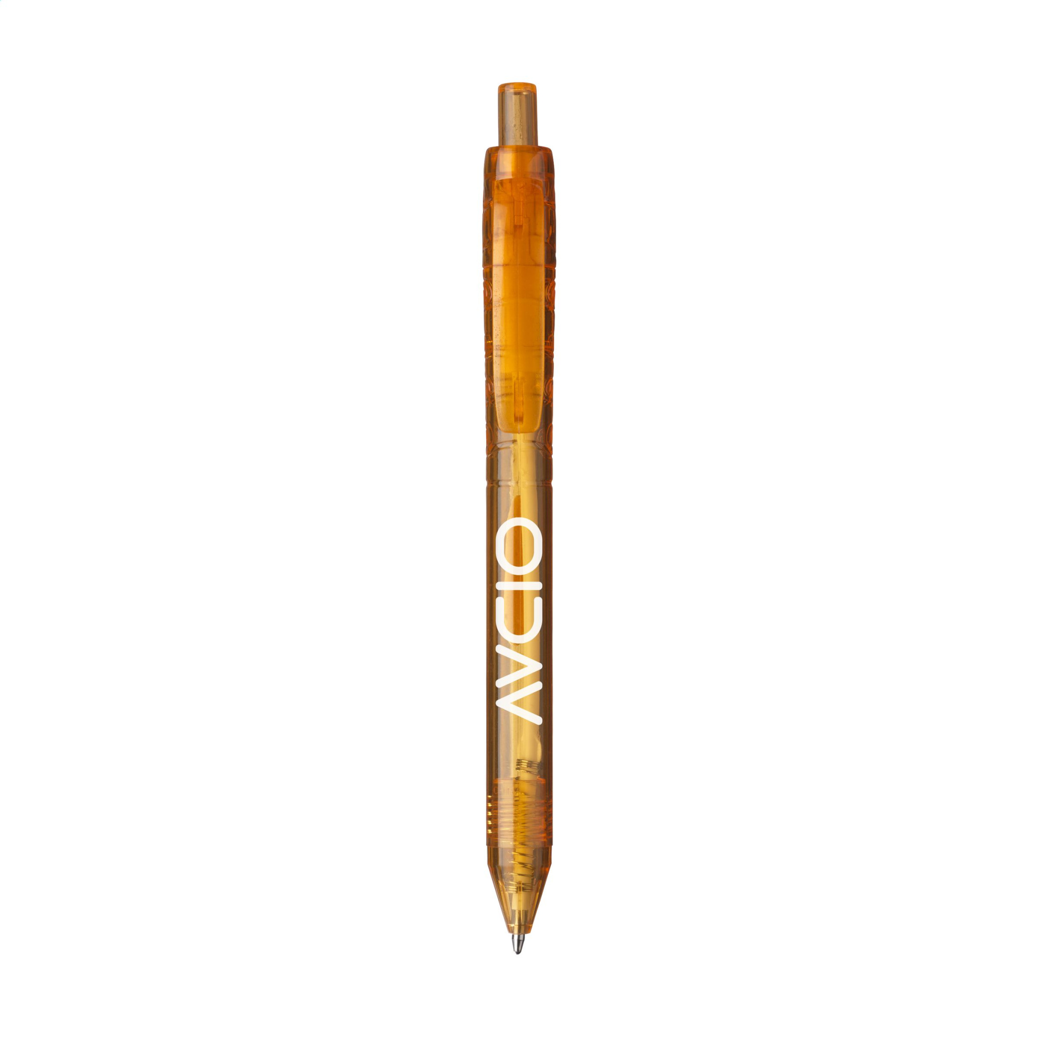 WoW! Blue ink ballpoint pen with transparent barrel,, made almost entirely from recycled PET bottles.