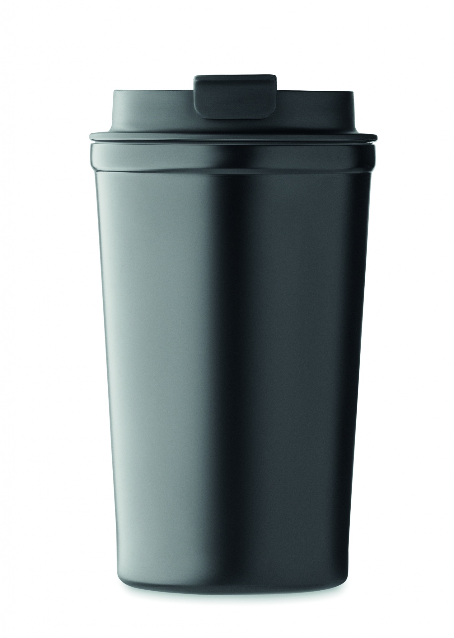 Double wall vacuum insulated tumbler in recycled stainless steel (90% recycled stainless steel and 10% stainless steel) with a ceramic inner lining. Leak-free. Capacity: 450 ml.