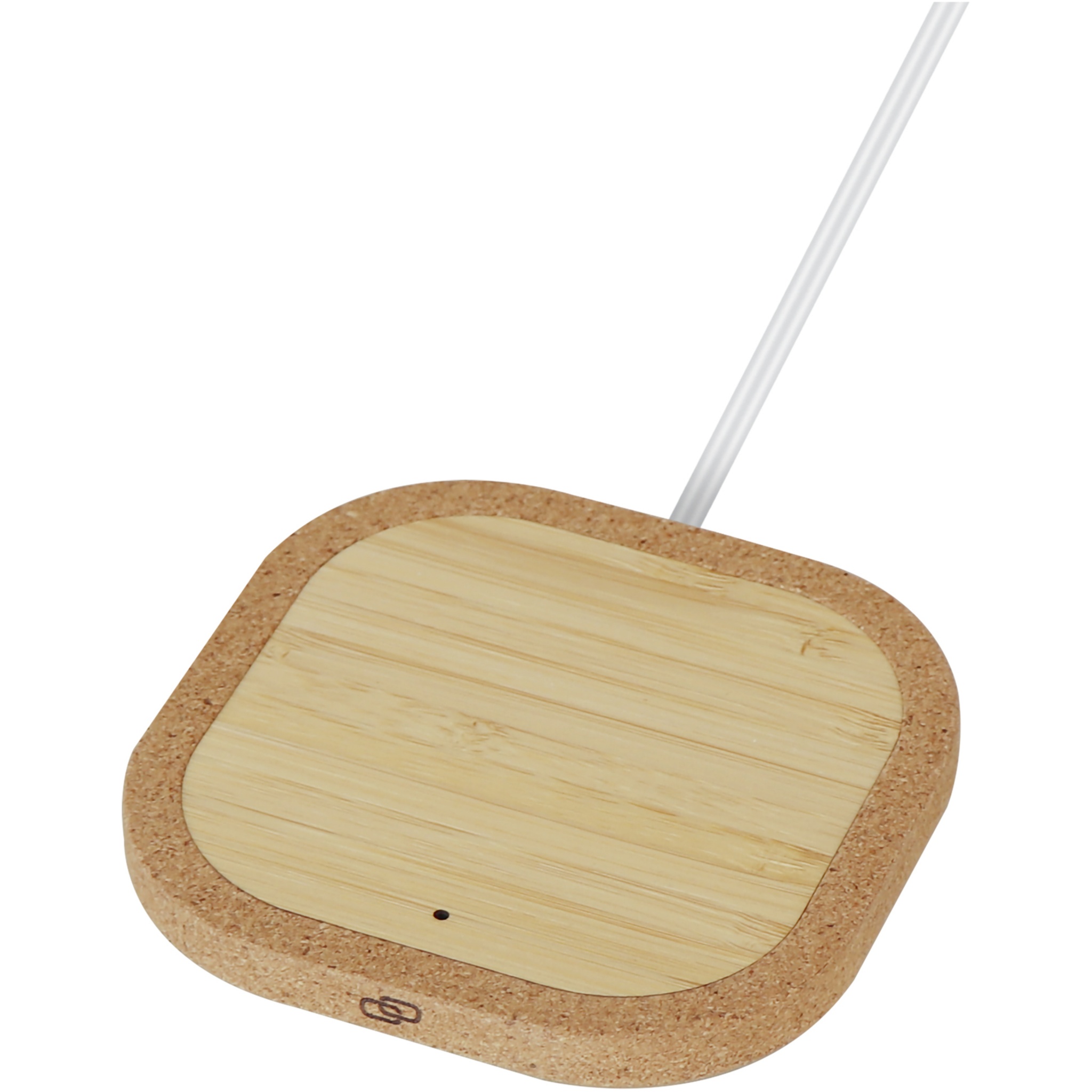 The Cerris 15W wireless charging pad made from cork and bamboo is the more sustainable choice amongst wireless chargers. Its housing and charger area are made from real cork and bamboo. With up to 15W wireless charging output, devices are fully powered quickly. Compatible with all Qi devices (iPhone 8 or above and Android devices that support wireless charging). Comes with a 100 cm fixed TPE USB-A cable. Delivered in a premium kraft paper box with a colourful sticker. Since cork and bamboo are natural materials, there might be slight variations in colour and size per item, which may affect the final printing outcome.