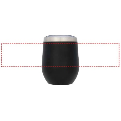 The Corzo copper vacuum insulated cup has a double-wall vacuum construction with copper insulation which means it keeps drinks hot for 6 hours and cold for 24 hours. The construction prevents condensation on the outside of the tumbler. Easy sipping, push-on lid. Features spray powder coating on the outer body. Wide opening for comfortable filling and pouring. Volume capacity is 350 ml. Presented in an Avenue gift box.