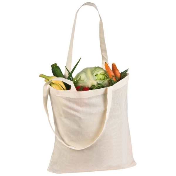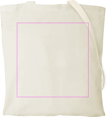 Oeko-Tex® STANDARD 100 certified, cotton bag with a grammage of 140 g/m² and two long handles. We print your logo in the centre of the bag.