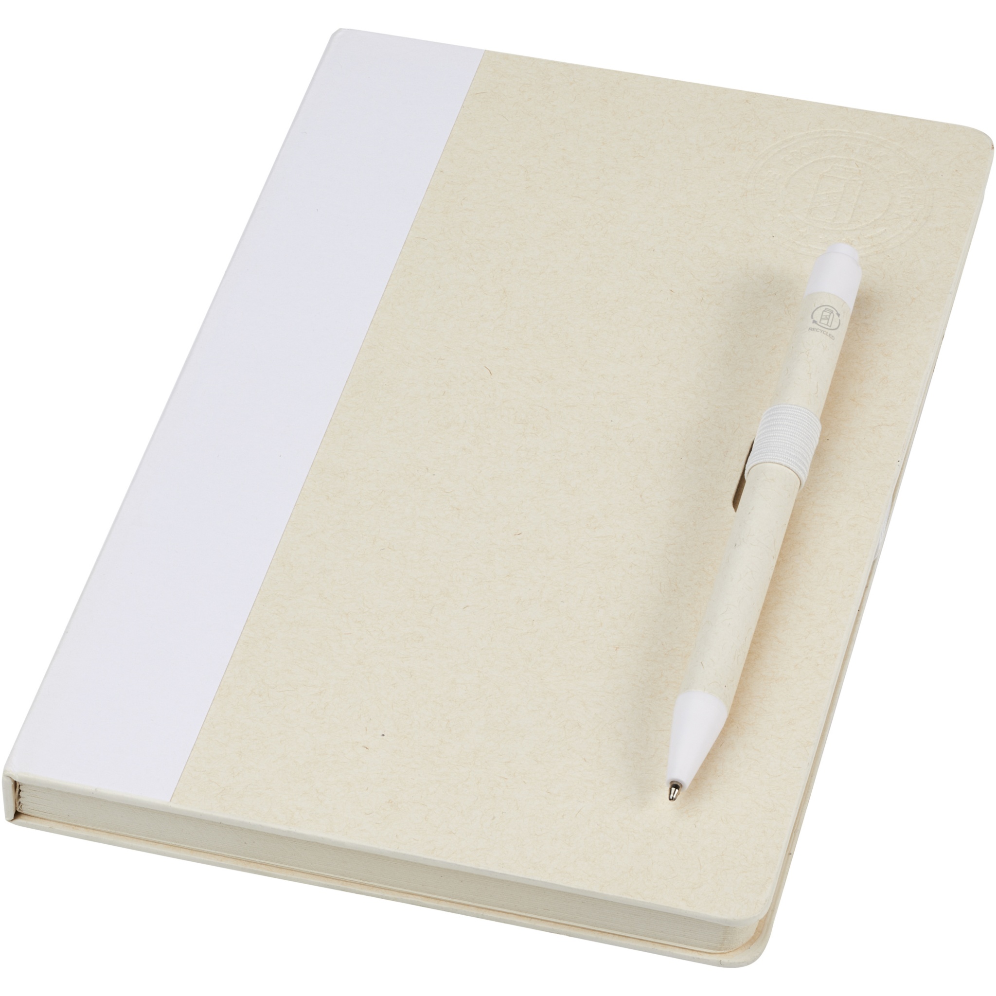 Dairy Dream A5 size reference recycled milk cartons notebook and ballpoint pen set, White