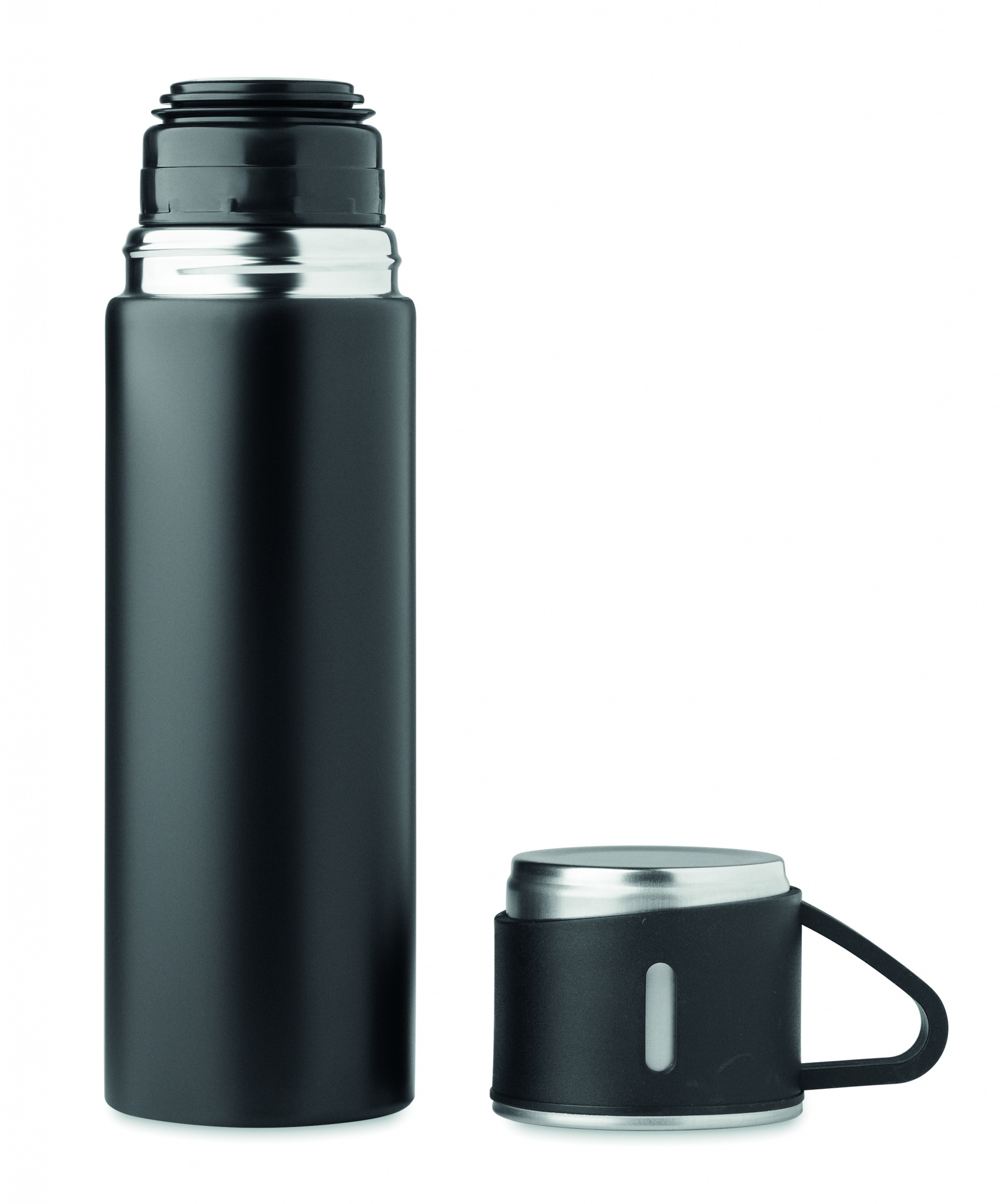 Double wall stainless steel vacuum insulated flask with leak-free cup lid. Capacity: flask 420 ml, cup 150 ml.