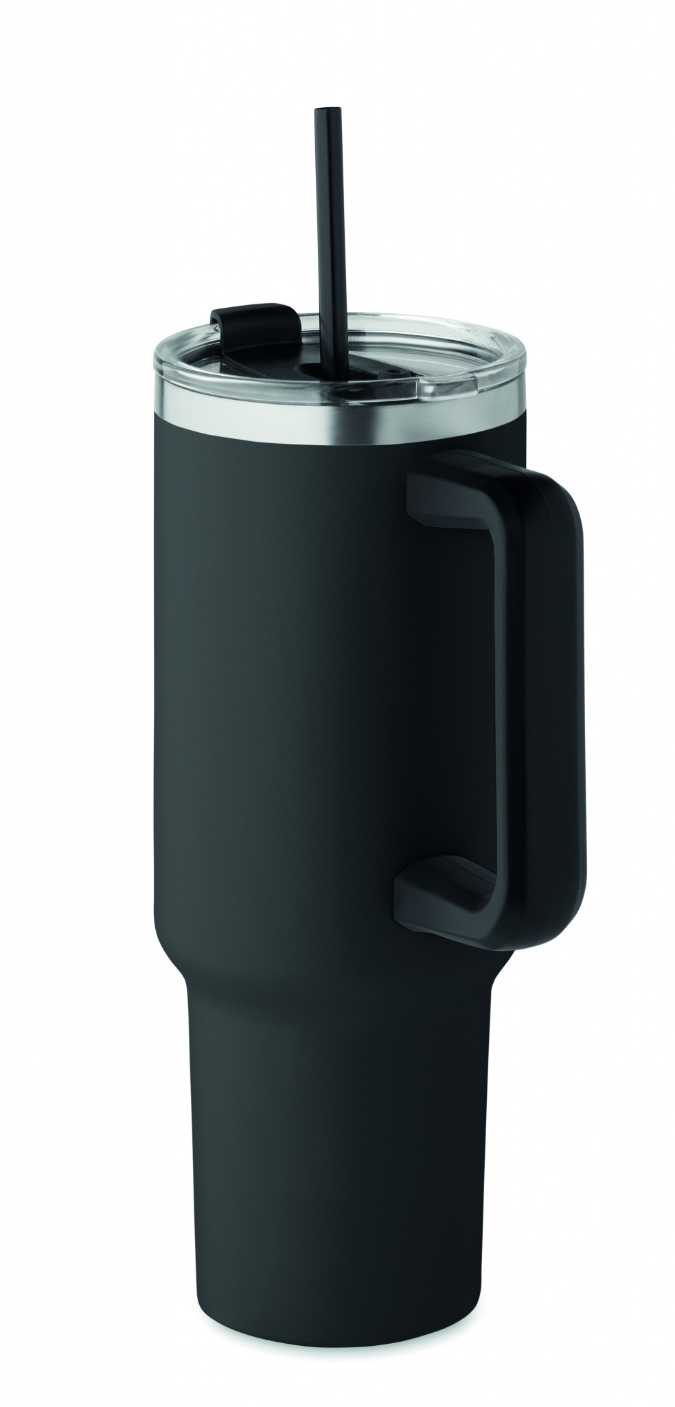 Double wall recycled stainless steel tumbler (90% recycled stainless and 10% stainless steel) with straw lid including PE straw. Capacity 1200 ml.