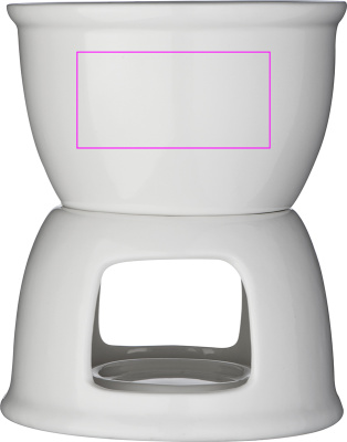 Chocolate fondue set made of porcelain, including 2 fondue forks. Dip fruits or biscuits into the chocolate and enjoy this beautiful gift set. Your logo will be printed on a label and sticked on the single box.