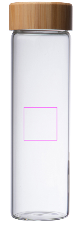 Glass bottle with bamboo lid and 500ml filling capacity. Your logo will be engraved on the lid.