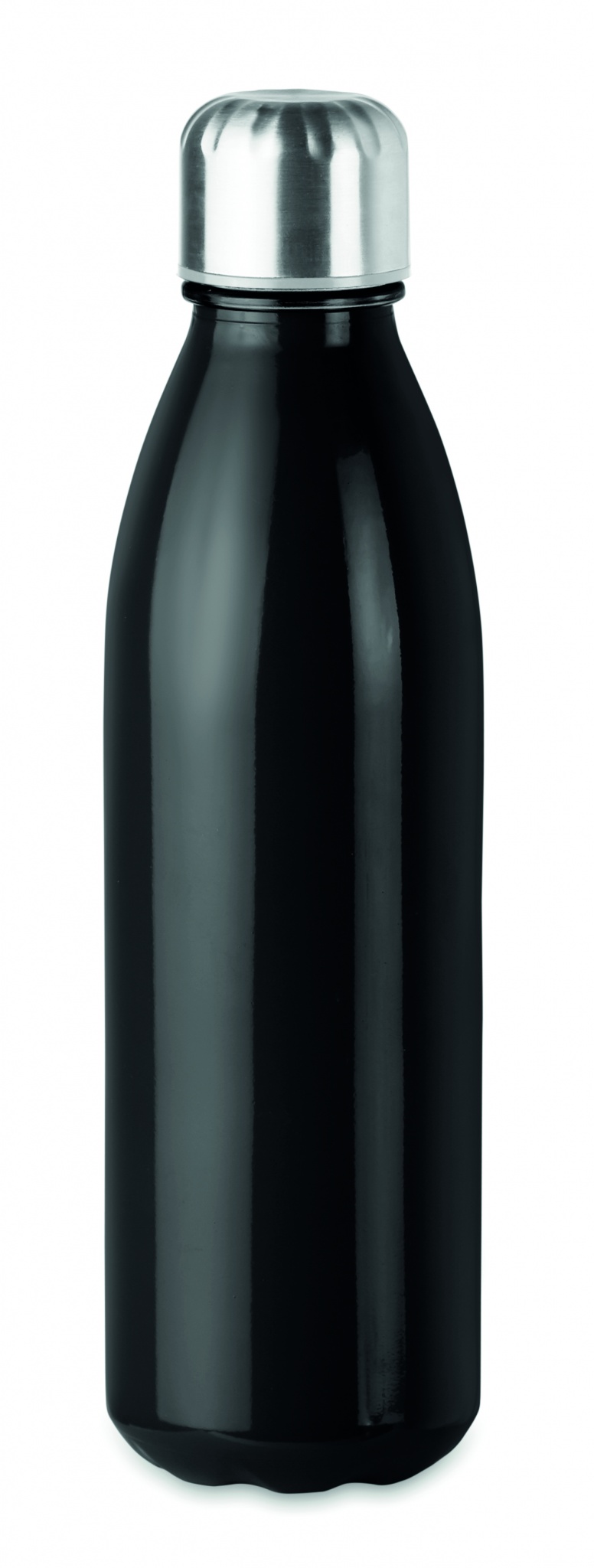 Glass drinking bottle with stainless steel lid. Capacity: 650 ml. Not suitable for carbonated drinks. Leak free.