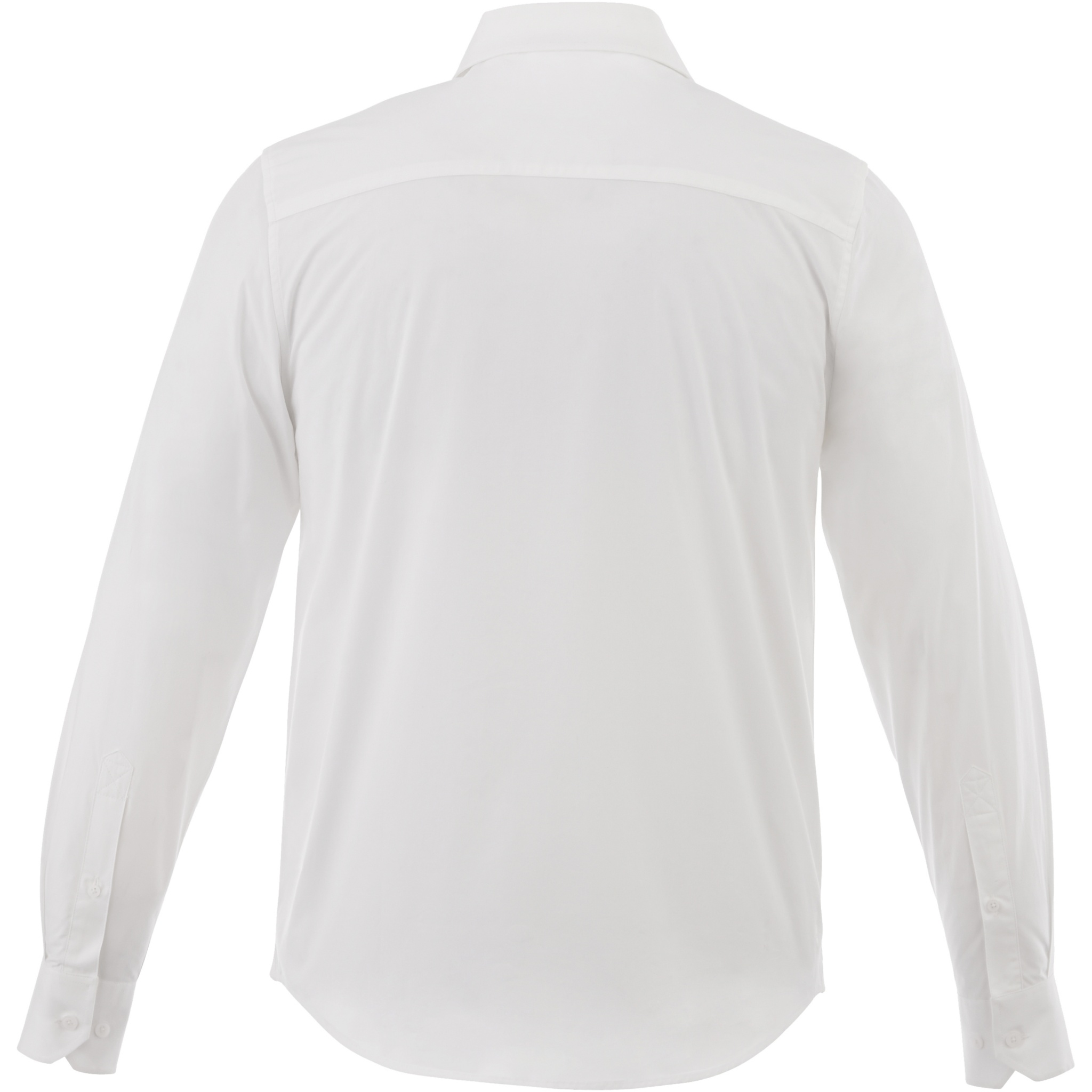 The Hamell long sleeve men's stretch shirt – an ideal combination of style and comfort. This woven shirt features a lightweight poplin fabric of 97% cotton and 3% elastane. Poplin fabric is known for its tight weave, which provides exceptional durability while maintaining a soft and smooth texture against the skin. This means that the Hamell shirt is not only comfortable to wear but also resistant to everyday wear and tear, ensuring long-lasting use. The added stretch provides ultimate freedom of movement, ensuring optimal comfort throughout the day even more. Its hidden button-down collar adds sophistication while maintaining a clean look.