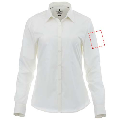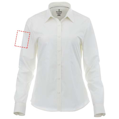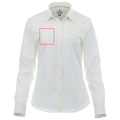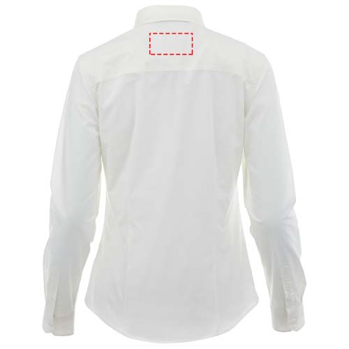 The Hamell long sleeve women's stretch shirt – an ideal combination of style and comfort. This woven shirt features a lightweight poplin fabric of 97% cotton and 3% elastane. Poplin fabric is known for its tight weave, which provides exceptional durability while maintaining a soft and smooth texture against the skin. This means that the Hamell shirt is not only comfortable to wear but also resistant to everyday wear and tear, ensuring long-lasting use. The added stretch provides ultimate freedom of movement, ensuring optimal comfort throughout the day even more. Its hidden button-down collar adds sophistication while maintaining a clean look. This shirt is designed with a fitted shape for a feminine look.