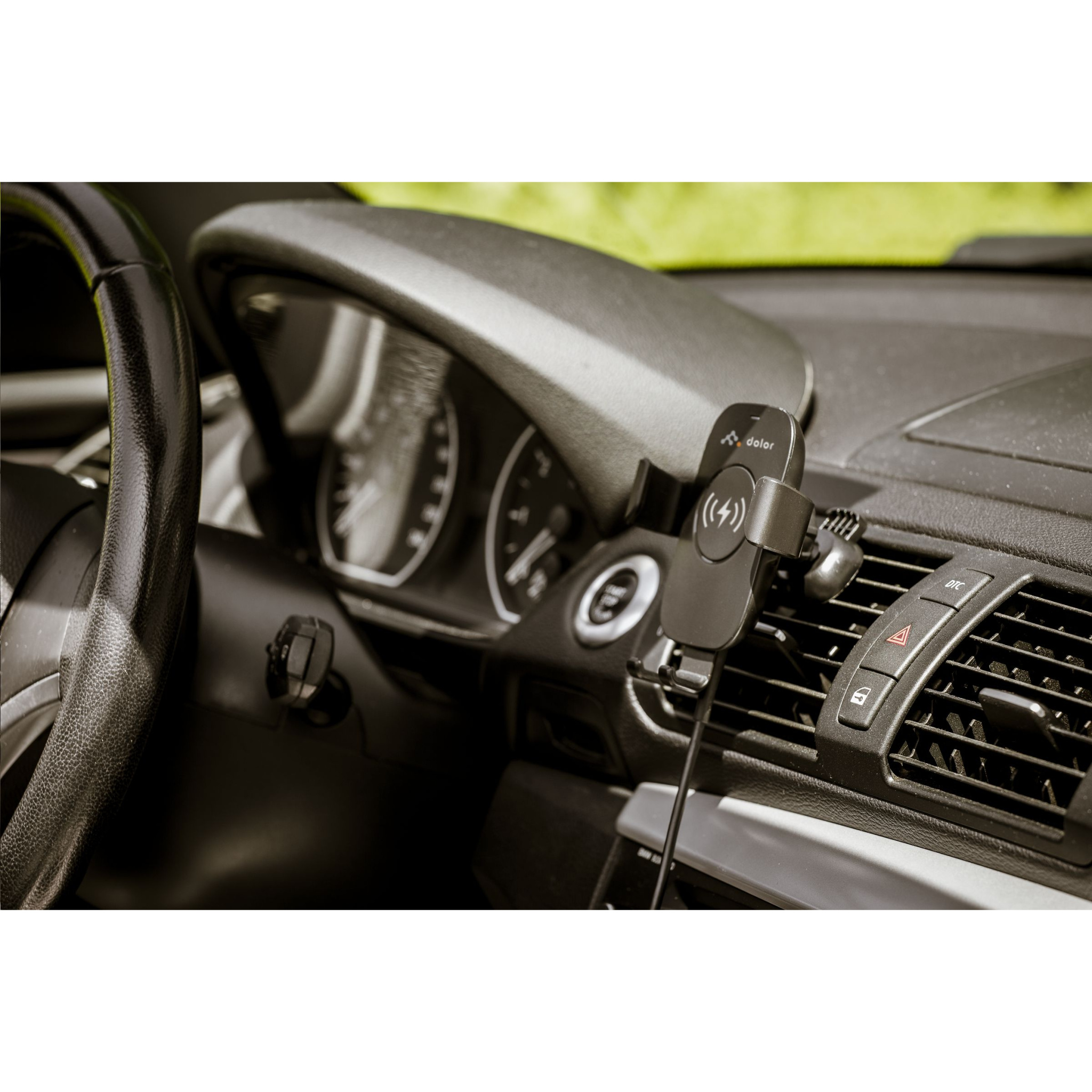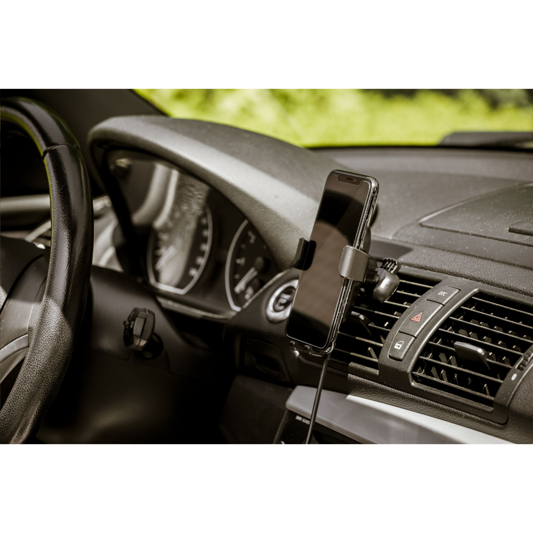 10W universal car phone holder and charger. Made from recycled ABS plastic. This phone holder is easy to fit, adjusts to the size of your phone and can be operated with one hand. Ideal for satellite navigation and for charging your phone whilst on the move. The phone can be placed in a vertical or horizontal position thanks to the 360 ° rotating clip. The 10W wireless charger is compatible with devices that support QI wireless charging (latest generations Android and iPhone). Input: 5V/2A. Wireless output: 5/2A 10W. Includes a micro-USB cable (TPE) and instruction manual. This product and its accessories are PVC free. Each item is individually boxed.