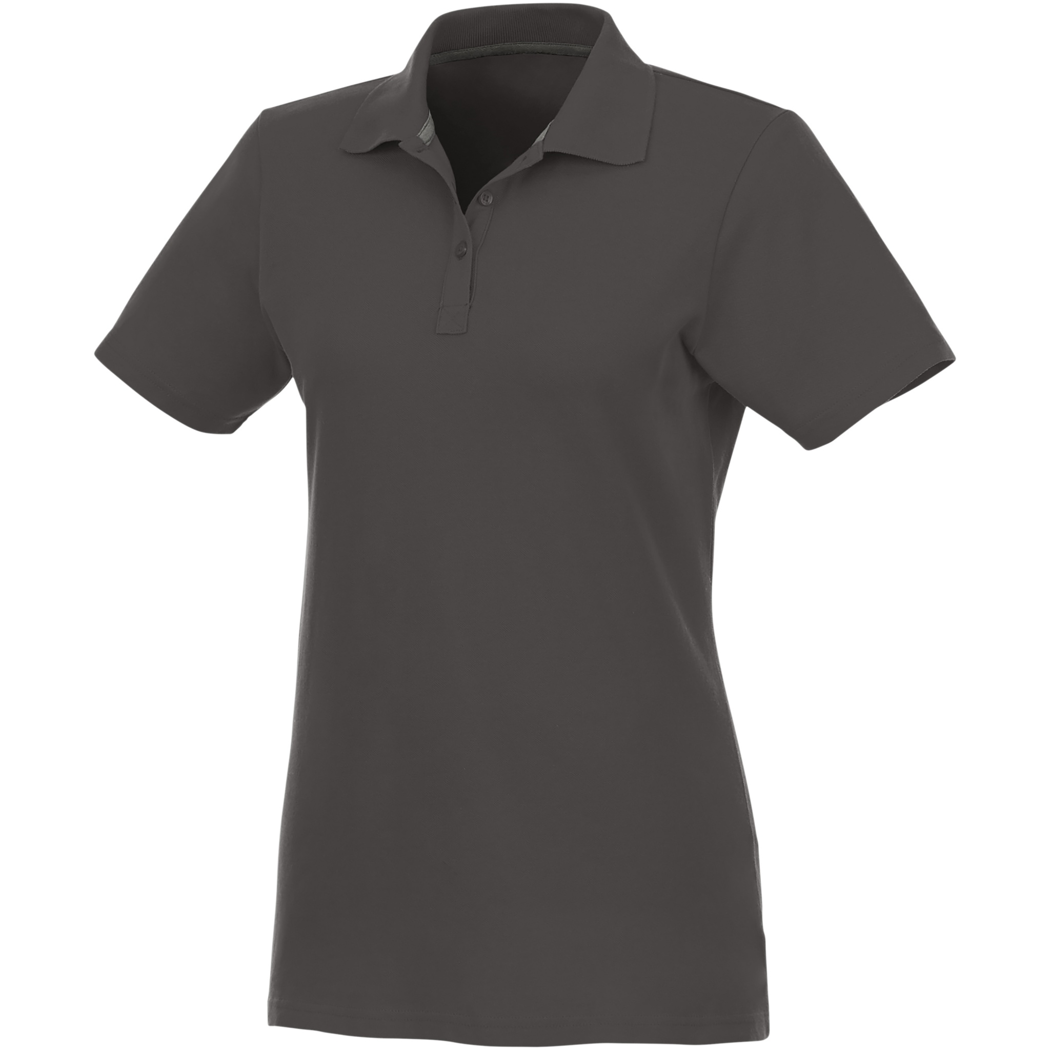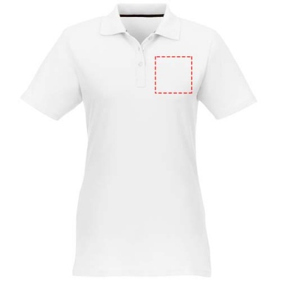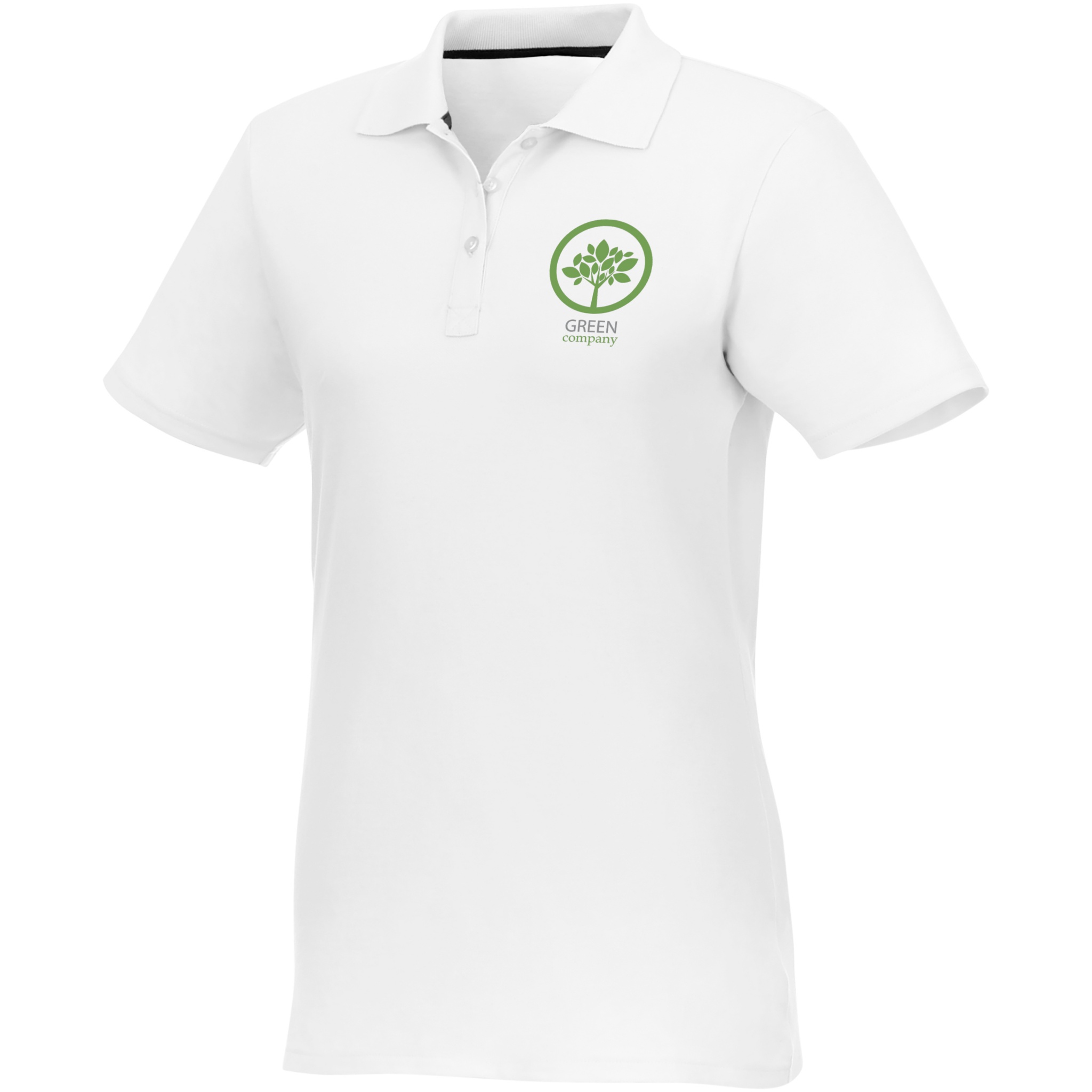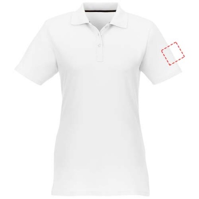 The Helios short sleeve women's polo combines refined style with unique custom branding options, and it is designed with a fitted shape for a feminine look. Made from 180 g/m² cotton pique, it offers lightweight comfort and durability. The interior, including tearaway-cutaway main label, allows for custom logo placement, making it the perfect pick for any event. With a classic polo collar and short sleeves, it transitions effortlessly from casual to formal occasions. Multiple colours available to suit any brand.
