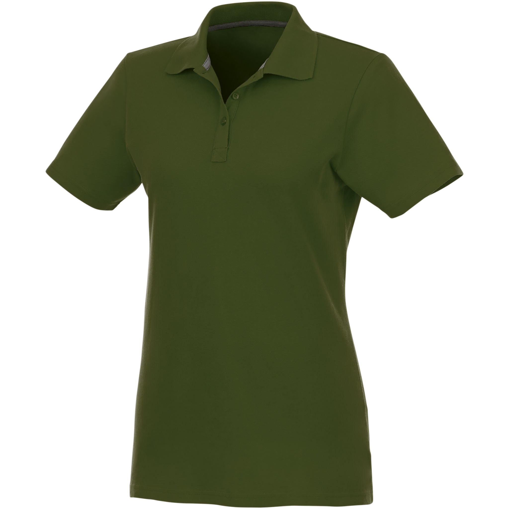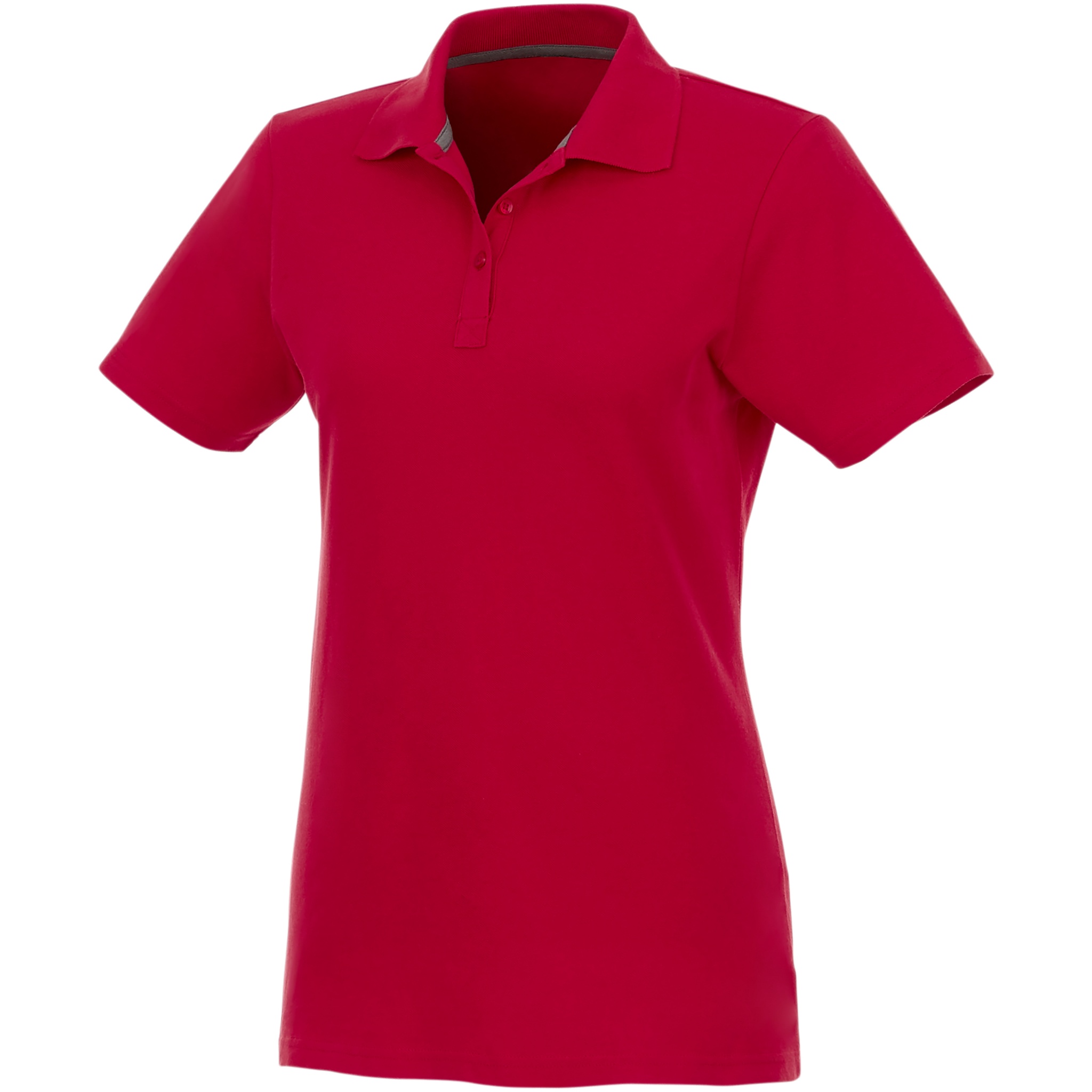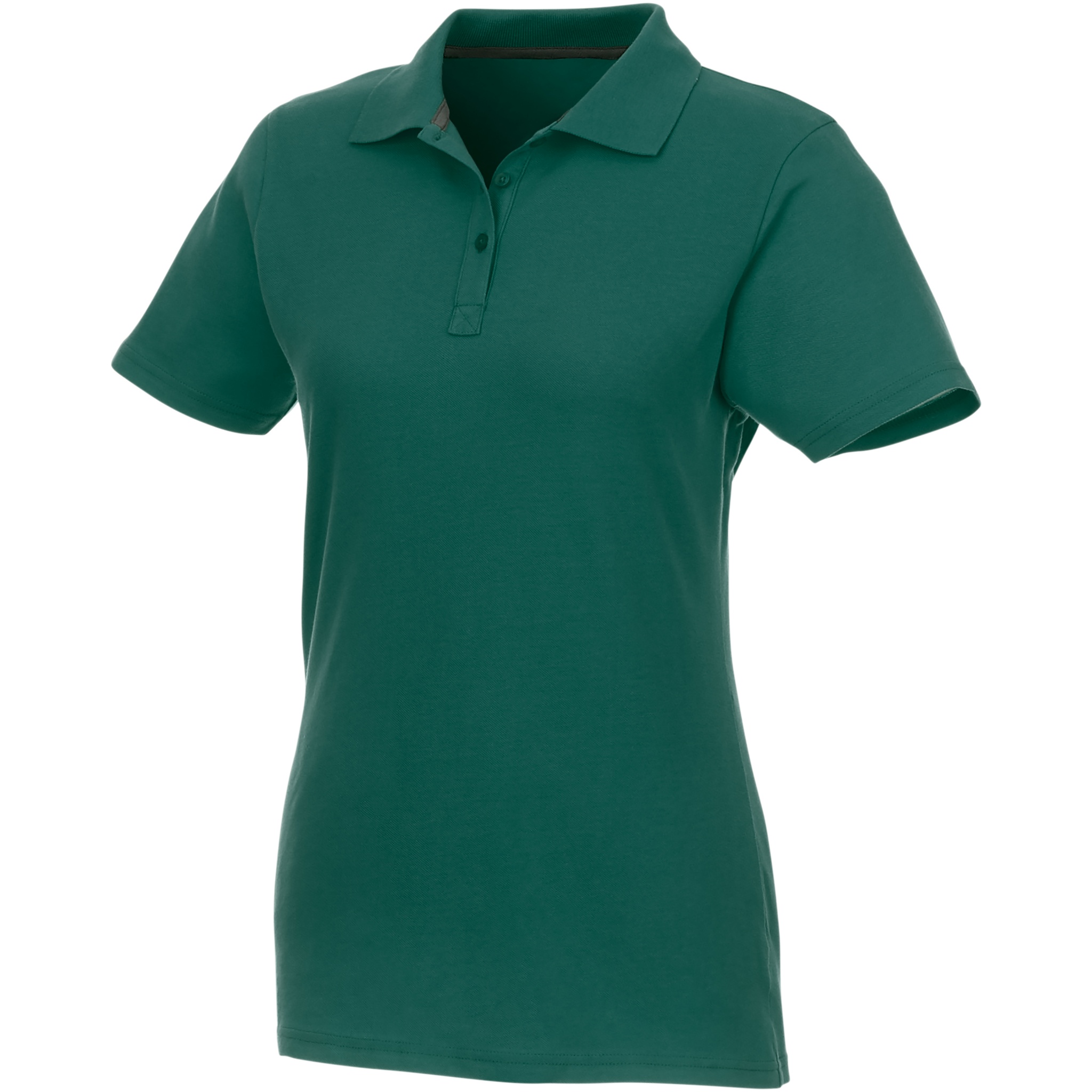 The Helios short sleeve women's polo combines refined style with unique custom branding options, and it is designed with a fitted shape for a feminine look. Made from 180 g/m² cotton pique, it offers lightweight comfort and durability. The interior, including tearaway-cutaway main label, allows for custom logo placement, making it the perfect pick for any event. With a classic polo collar and short sleeves, it transitions effortlessly from casual to formal occasions. Multiple colours available to suit any brand.