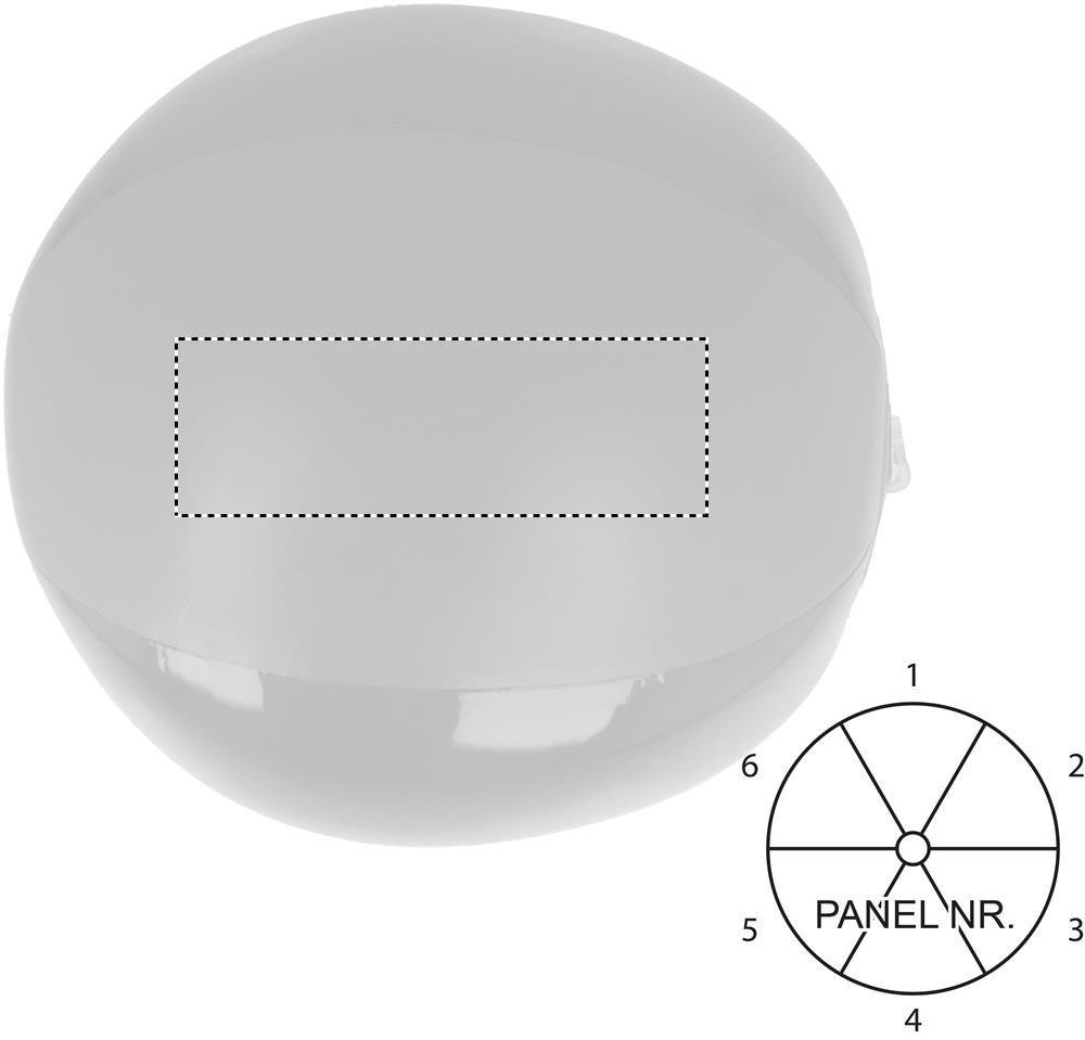 Inflatable beach ball with transparent and solid panels. Inflated: Ø24cm
