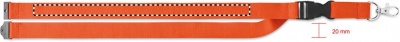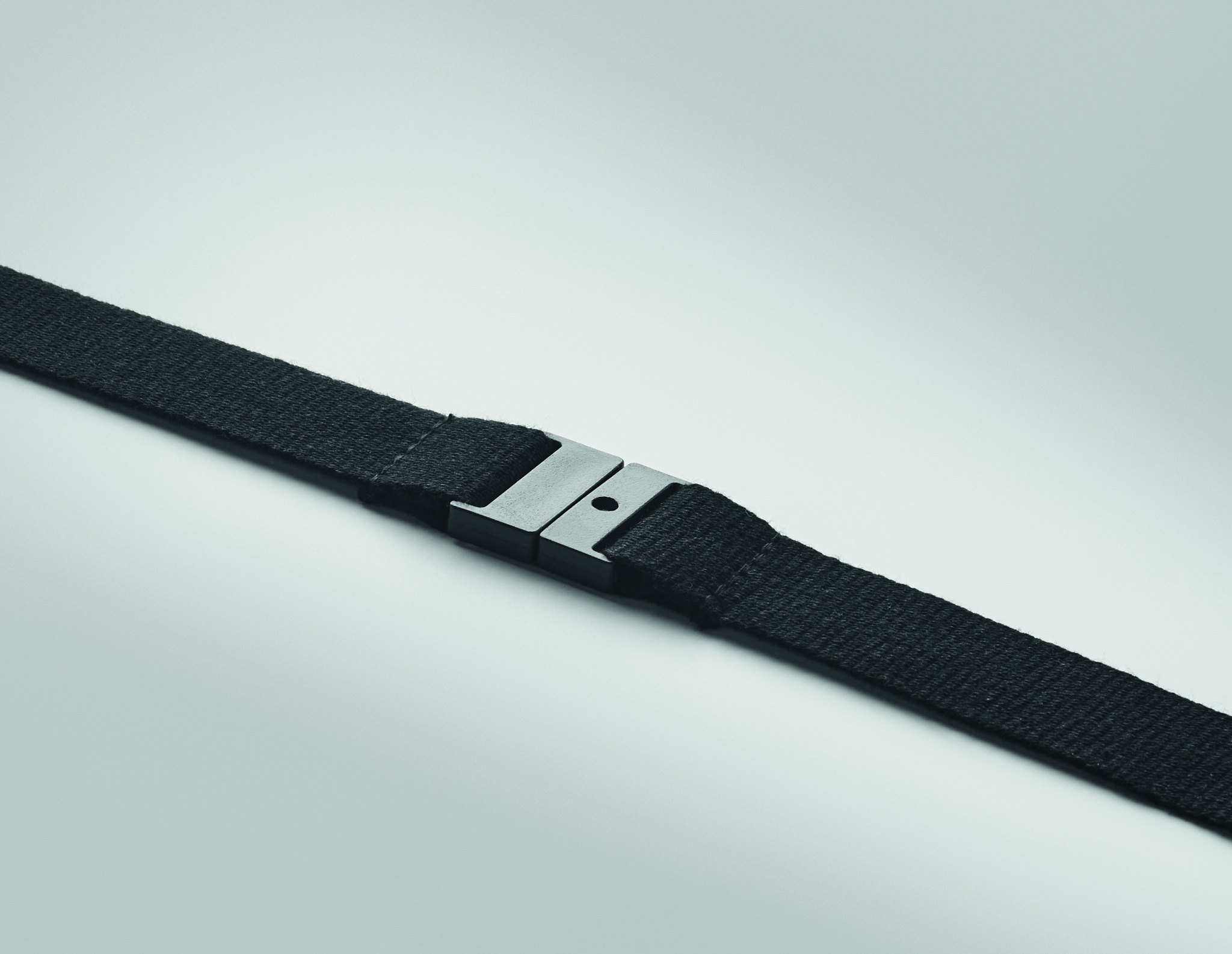 Cotton lanyard with metal hook, detachable buckle and safety breakaway. 20 mm wide.