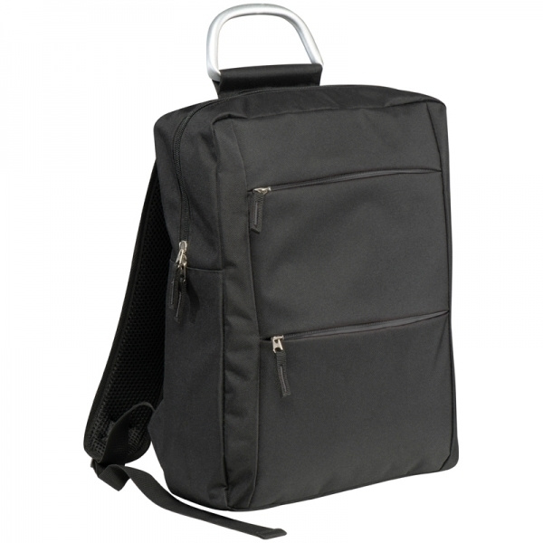 Laptop backpack in new attractive design, with several inner compartments and two outer compartments. Your logo will be printed centred on the front.