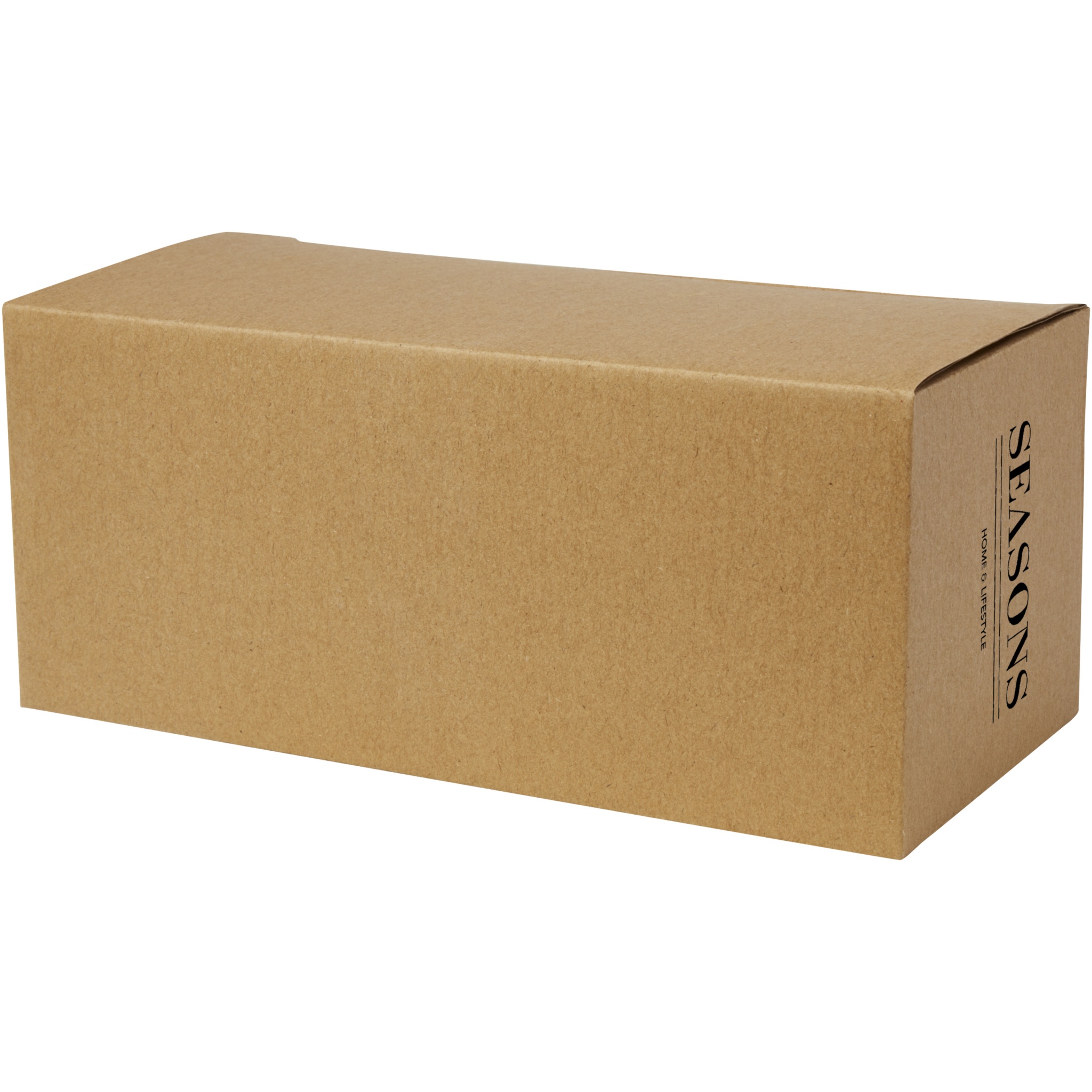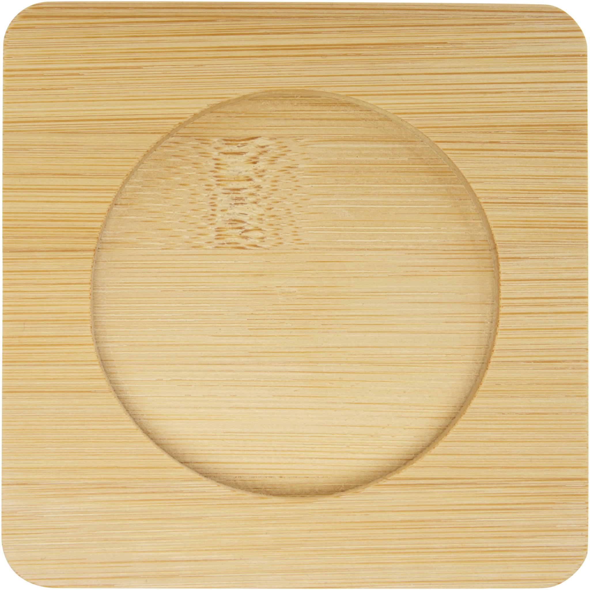 A set of 2 double-wall thermal glasses with bamboo coaster. The bamboo comes from sustainable, environmentally, and socially responsible sources. Thanks to the double borosilicate glass, the temperature of the drink is retained for a long time. Volume capacity is 250 ml. Coaster size: 10 x 10 x 1 cm.
