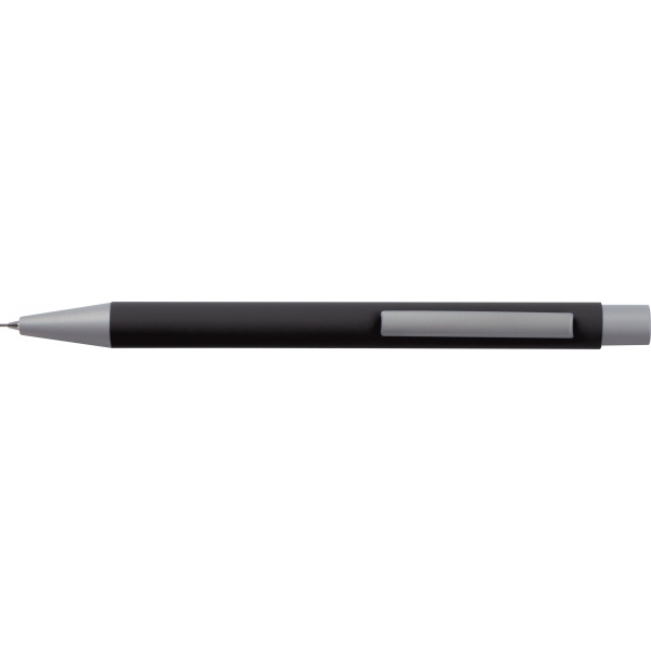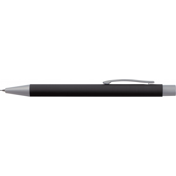 Mechanical pencil made of metal with a rubber finish surface and two pencil leads (0,5 mm).