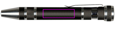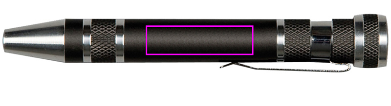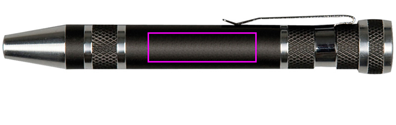 Metal screwdriver set with eight different bits. We apply your advertising message on the shaft by means of laser engraving.