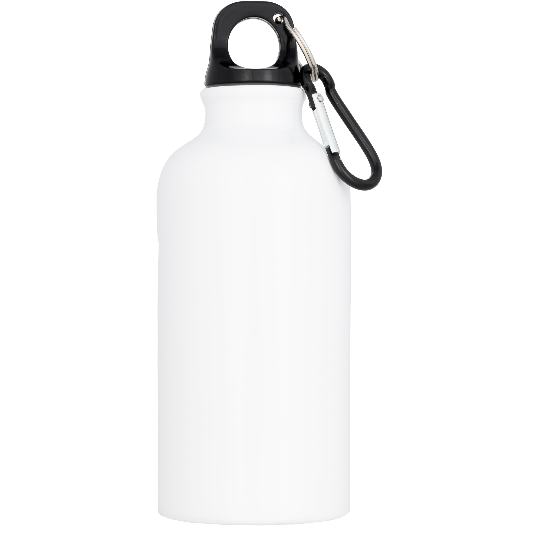 Single walled bottle with twist on lid. The bottle has a special coating for sublimation. Carabiner is not suitable for climbing. Volume capacity is 400 ml.