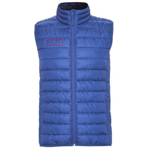 Feather touch gilet vest for men. Matching inverted zips. Two front pockets with zip. Contrasting inner lining. Matching elastic trim in hem. Stow carry bag included. Light and foldable garment. Water resistant. Wind-proof model. The model is 185 cm and is wearing size M.