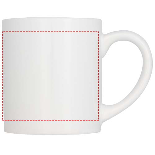 This ceramic mug has a special coating for sublimation. Volume capacity is 210ml. Presented in a white carton box.