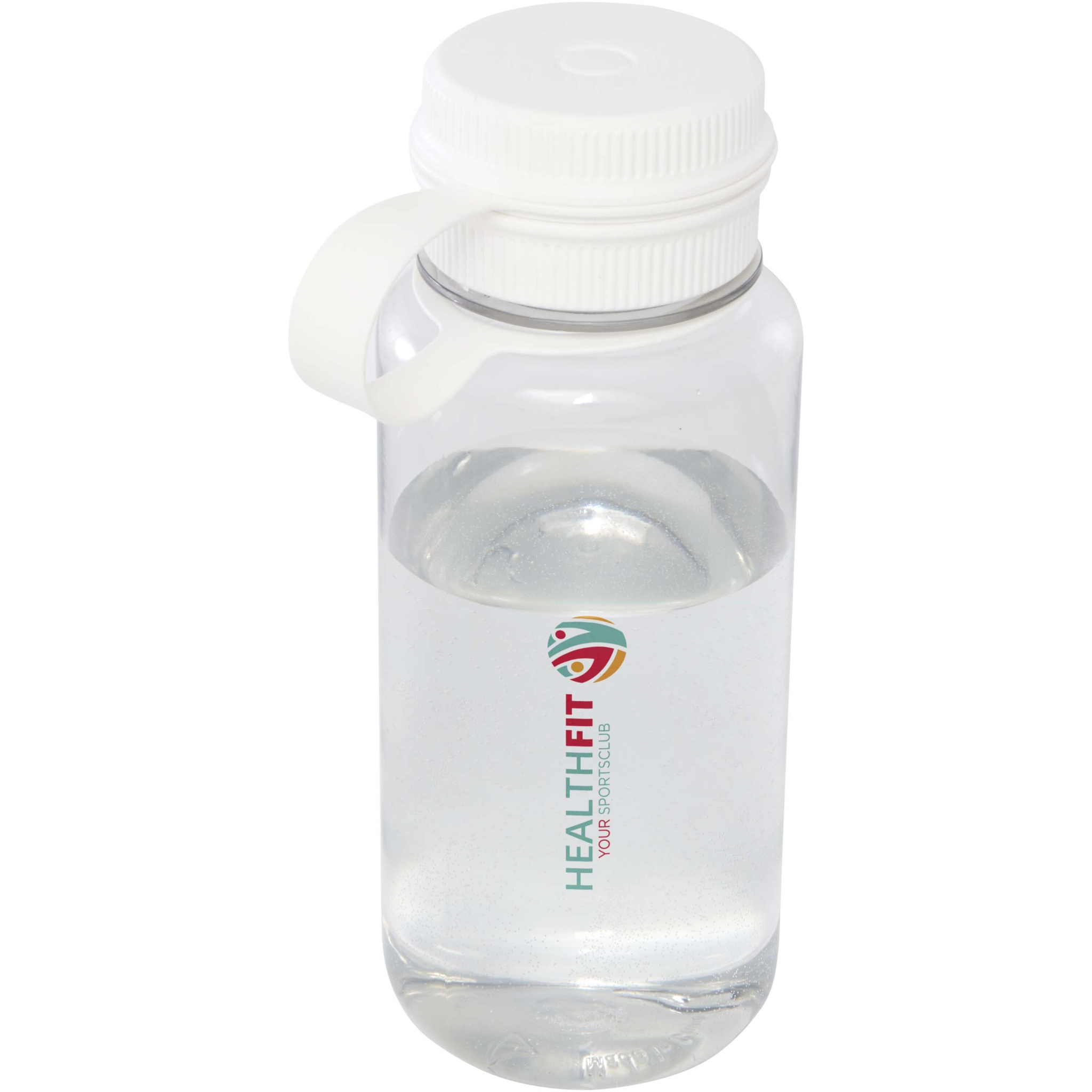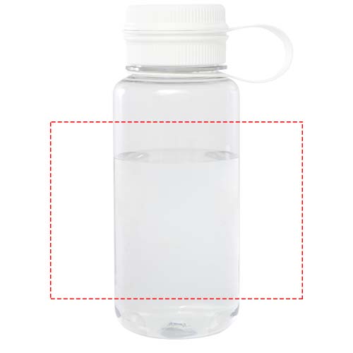 Single-walled sport bottle made from RCS certified RPET, featuring a screw-on top and leak-proof lid with a convenient handle for carrying that is integrated with the cap. Dual opening construction for easy cleaning and filling. In compliance with the EFSA-approved (European Food Safe Authority) PET recycling process. Volume capacity: 900 ml.