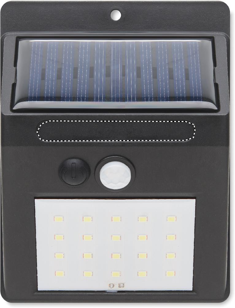 20 LED solar light in PP with motion and night sensors. PIR (Passive Infrared Sensor) motion sensor. CDS night sensor. Protection rating: IP 44. Battery capacity: 800 mAh.