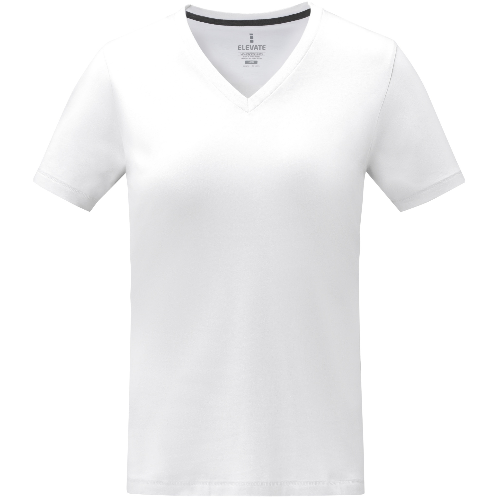 The Somoto short sleeve women's V-neck t-shirt made of 160 g/m² cotton is perfect for any occasion and a comfortable addition to any wardrobe. The ringspun cotton provides a stronger and more smooth yarn, that results in a more durable fabric that guarantees high quality branding. It is shaped for a feminine look and has side seams to ensure a great fit, and the V-neck design adds a touch of style. The printed in-neck Elevate branding also adds to its overall comfort, and the re-enforced shoulders ensure a continuous fit even after long-term use.