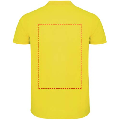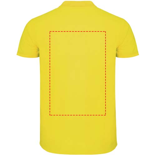 Short-sleeve polo shirt for men. Reinforced covered seams in interior collar. 1x1 ribbed cuffs and collar. Side seams. 3-button placket and side slits. Optional pocket. Removable label. The model is 124 cm and is wearing size 5/6.