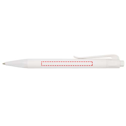 Click action longlasting and refillable ballpoint pen produced from 100% PLA (corn plastic) which reduces the amount of plastic used. Includes a refill with a writing length of approximately 2000 metres. The pen is delivered with a blue ink refill. Packed in a cardboard pen sleeve.
