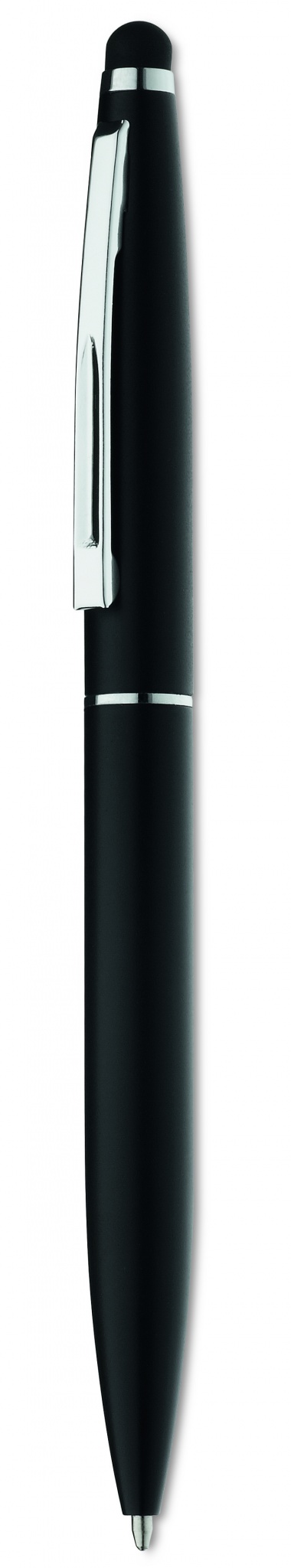 Twist action ball pen in aluminium with stylus and matt finish. Blue ink.