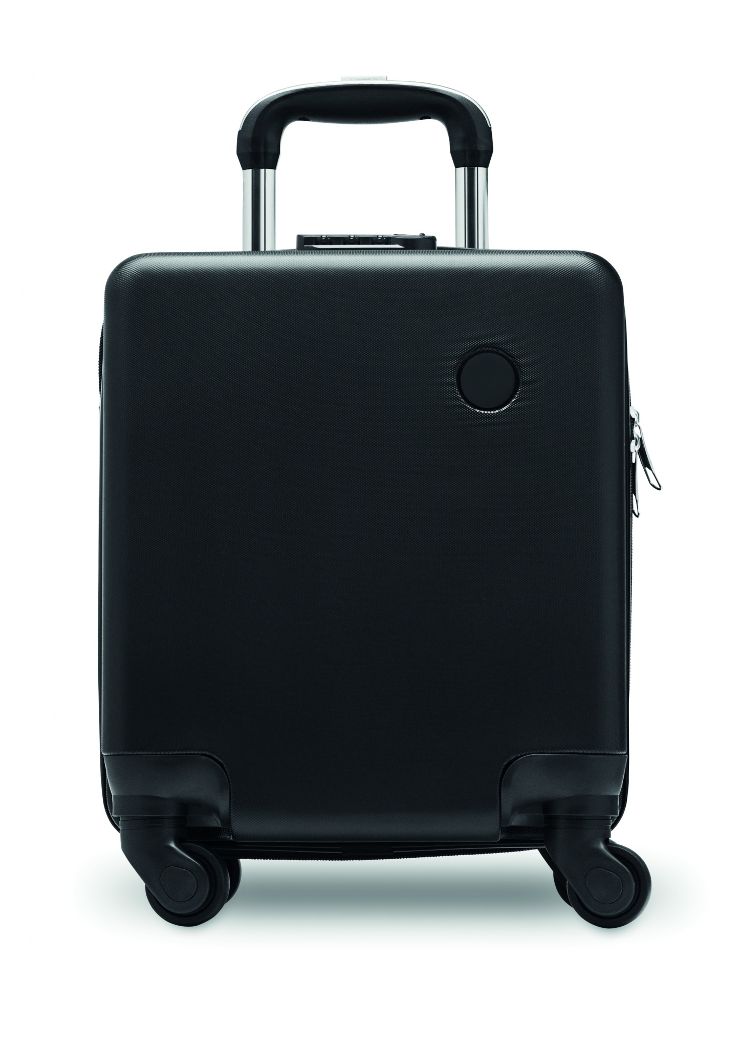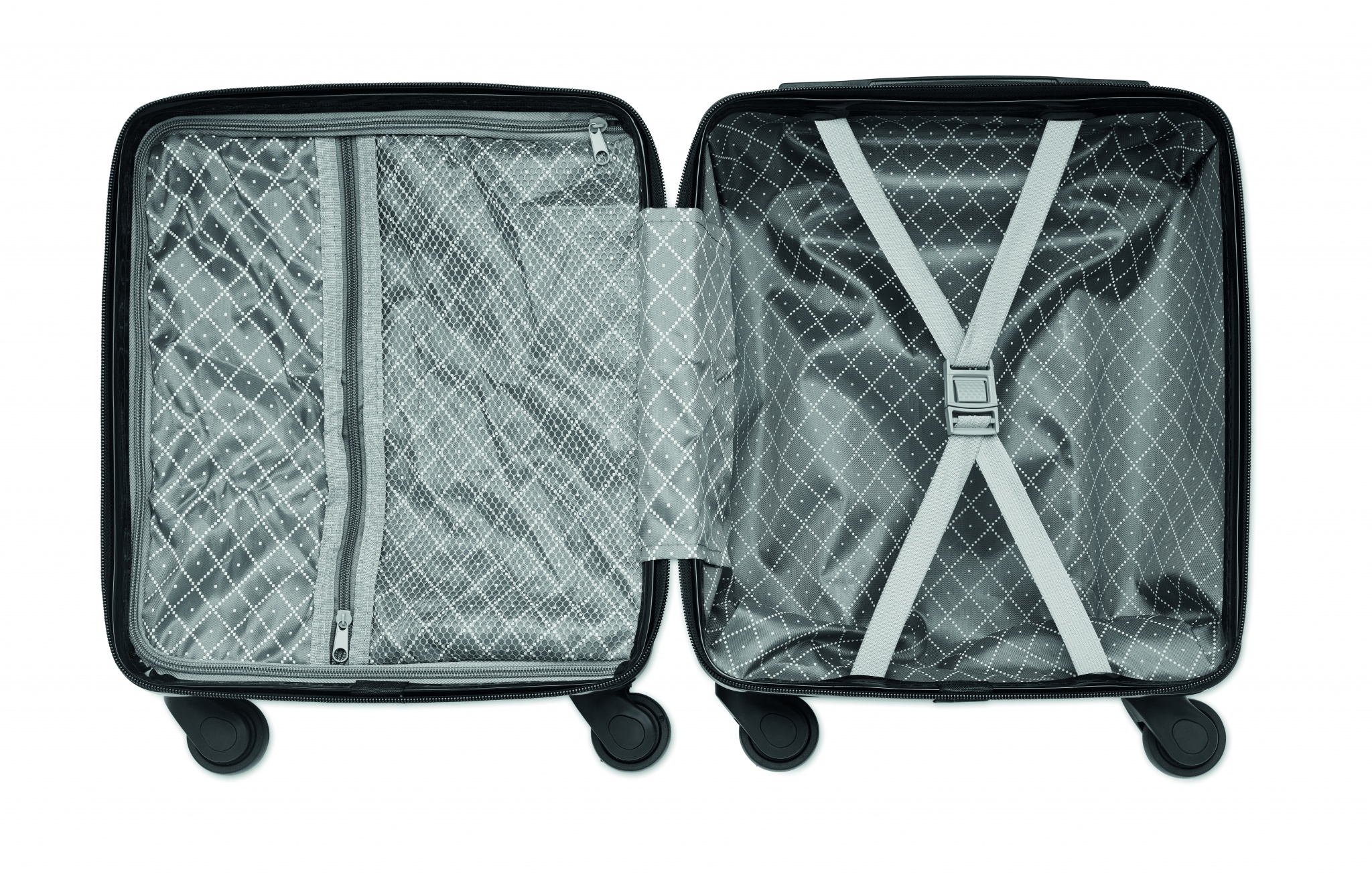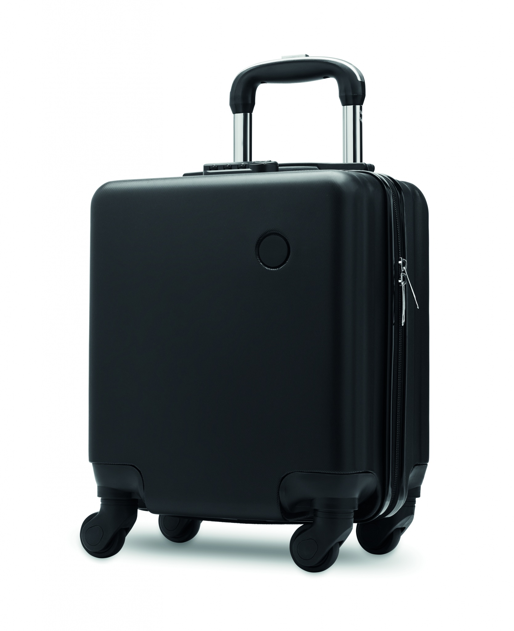 14 inch underseat luggage trolley with 4 wheels in ABS. It has an inside zippered pocket. Including a combination lock and double tube frame.