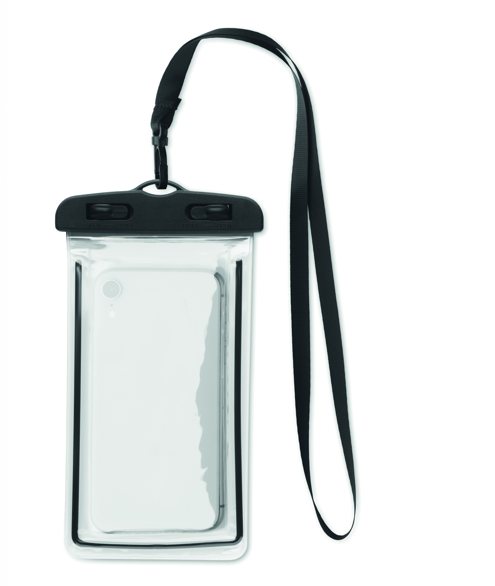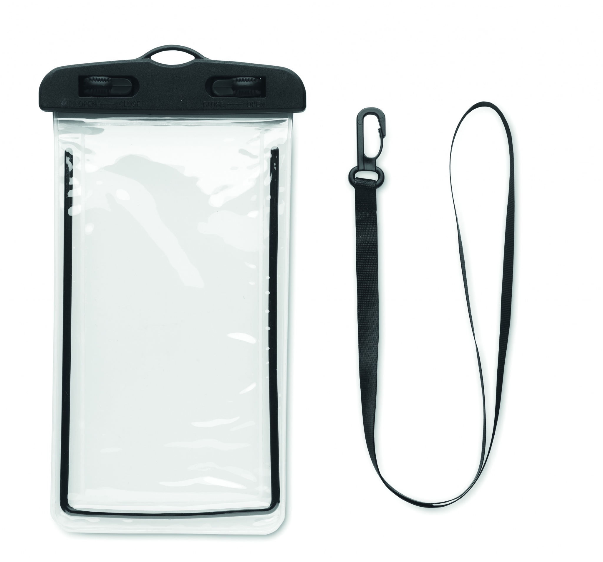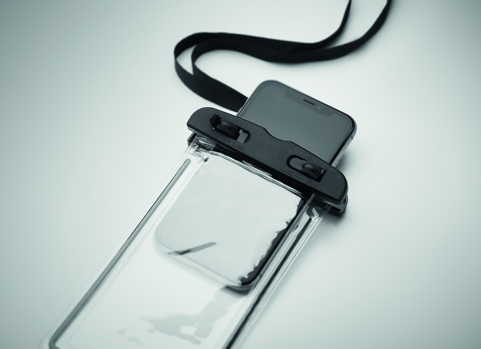Waterproof phone pouch with adjustable and detachable lanyard. Waterproof rating: IPX 6. Fit up to 6,7 inch screen phones.